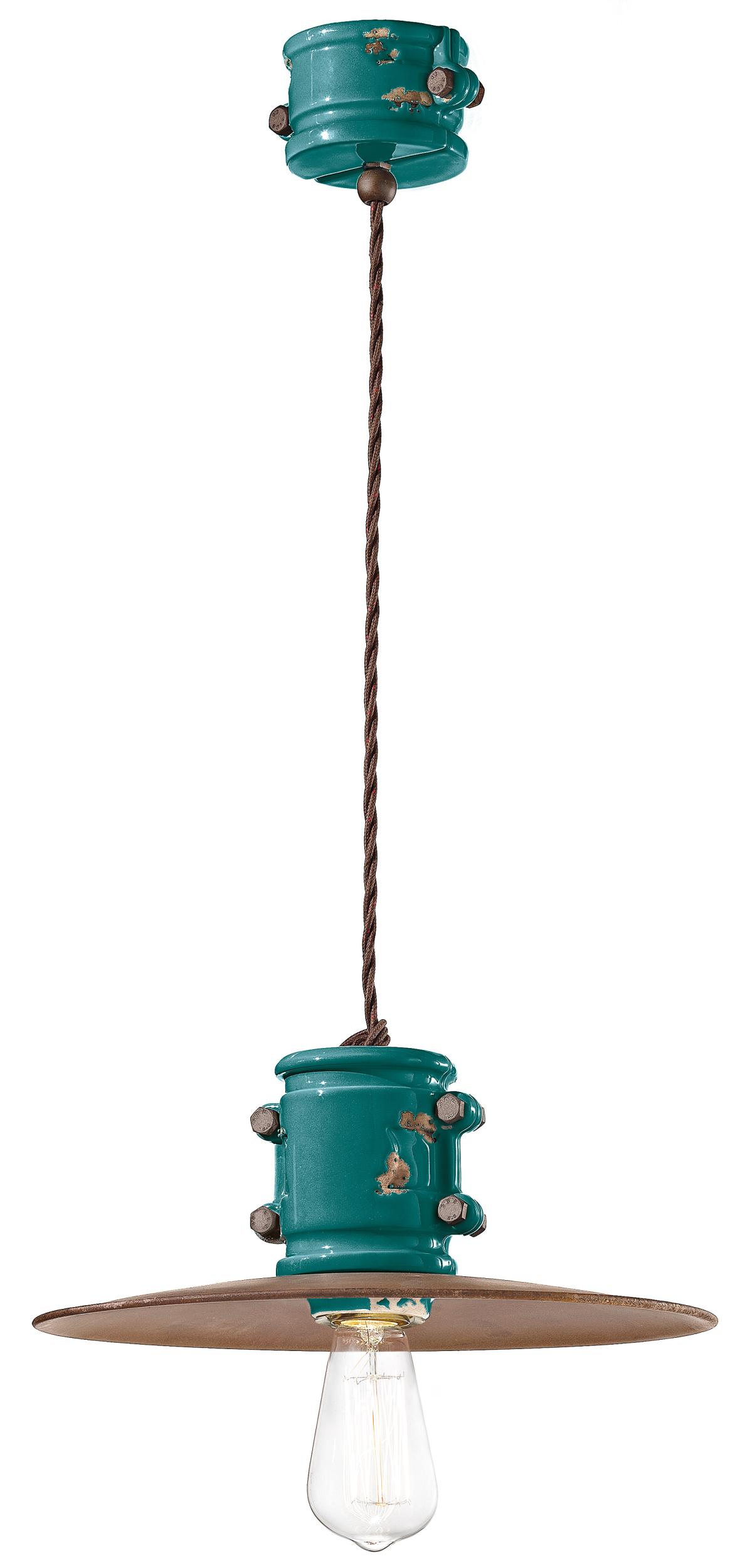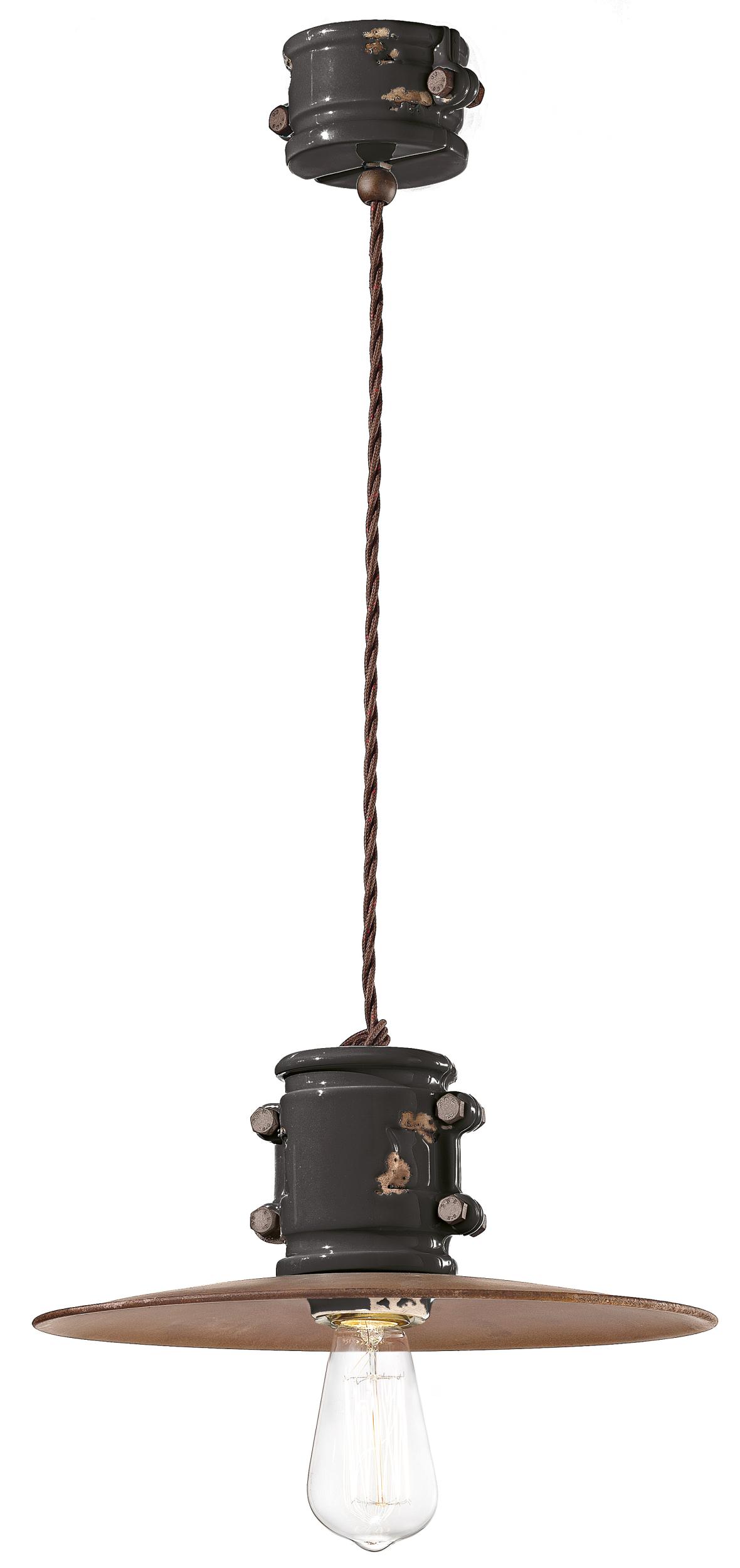 Lampe à suspension d.40 RETRO' URBAN C1522 par Ferroluce. Lampe en céramique et métal avec câble en tissu recouvert.