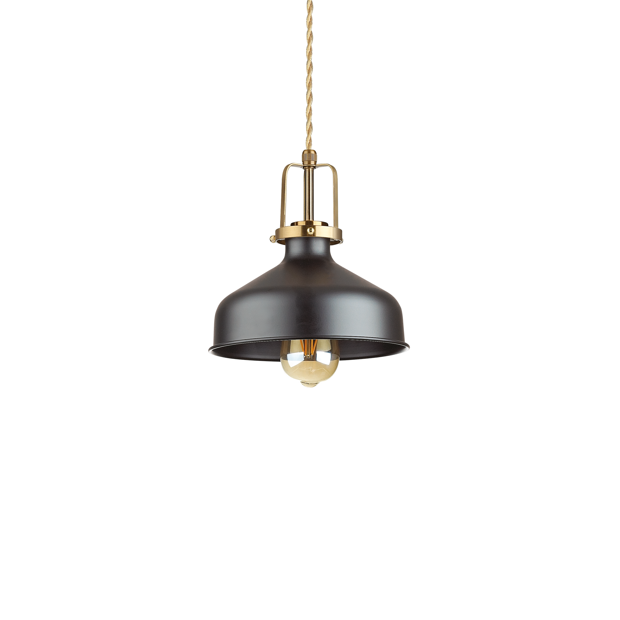 Lampe à suspension noire ERIS-2 SP1 d'Ideal Lux avec structure en métal avec rosace et diffuseur peints en noir mat, détails en finition or satiné. Câble électrique tressé recouvert de tissu. Ampoule exclue.