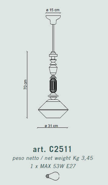 Lampe à suspension H.70 DECO' LARIAT C2511 par Ferroluce