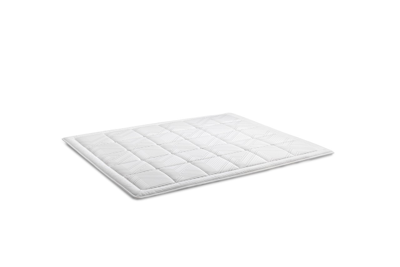 Garnissage en soie végétale. Cette fibre très légère et élastique est issue de filaments de cellulose très fins et gonflés d'air, enrobés d'une couche de cire naturelle issue du fruit du ceiba tropical. Elle retient jusqu'à 80 % d'air, ce qui en fait un excellent isolant. De plus, elle est inhospitalière aux bactéries grâce à son séchage rapide. Le tissu extérieur bénéficie d'un traitement antibactérien.