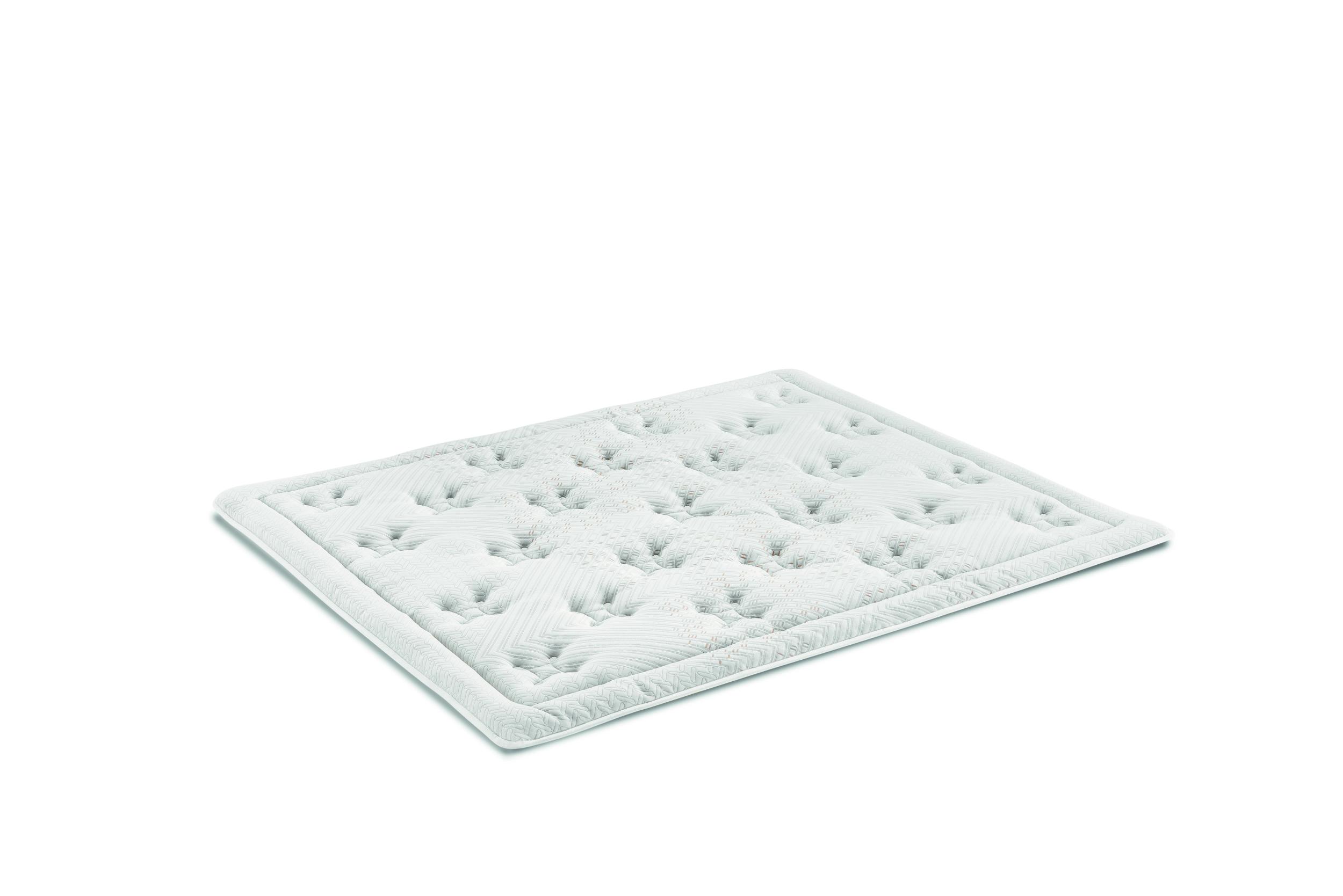 Rembourrage 100 % hypoallergénique. Respirant et élastique, doté d'excellentes propriétés hypoallergéniques et antibactériennes, il est fabriqué en fibre de polyester thermique à structure creuse pour permettre la circulation de l'air et faciliter l'évaporation de l'humidité générée par le corps pendant le sommeil. Il est fabriqué en Dacron® , marque européenne leader dans la production de fibres de rembourrage.