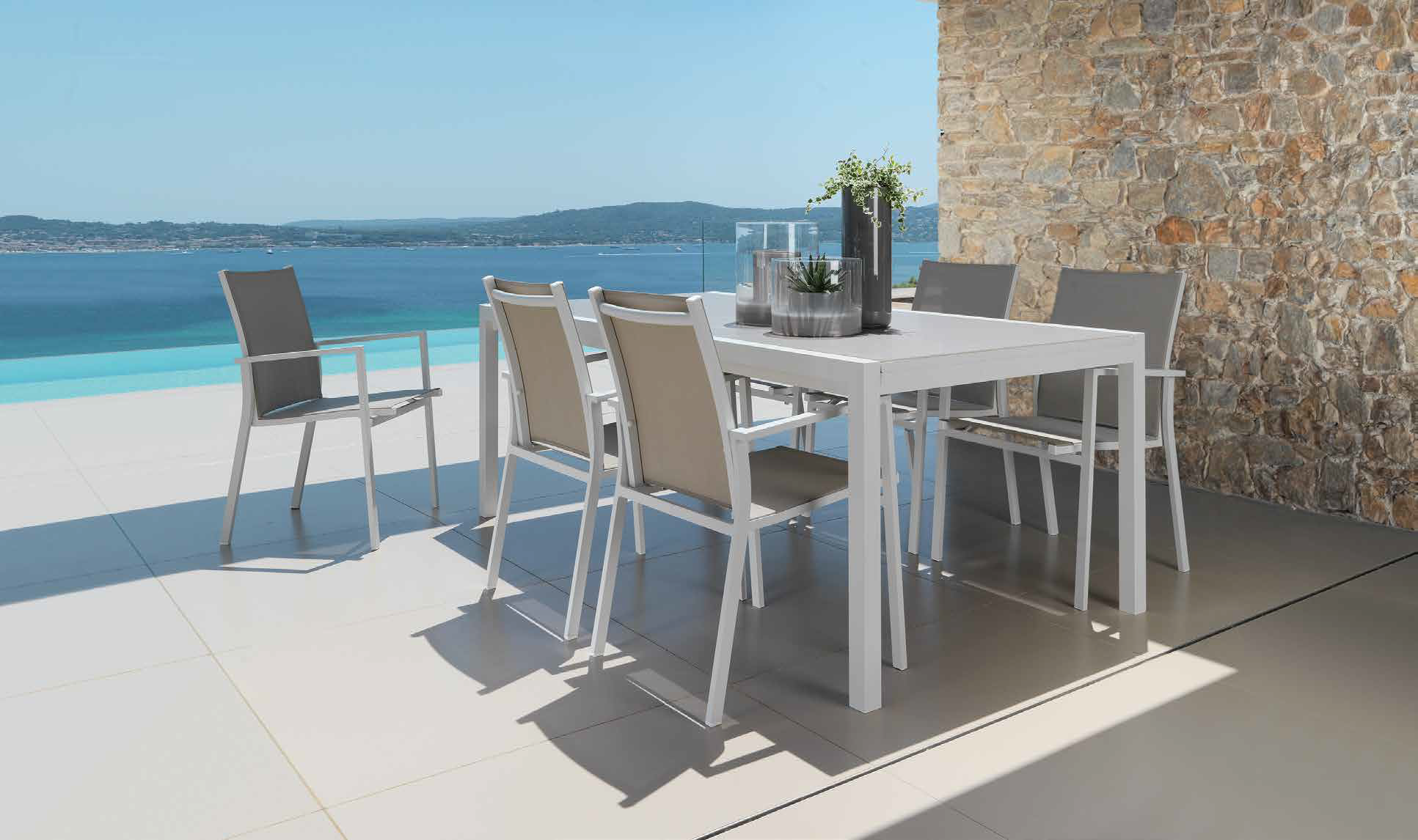 La grande table extensible 200/300 de la collection Maiorca promet d'être la pièce maîtresse de vos repas en plein air. Grâce à son extension de 100 centimètres, elle offre une polyvalence maximale sans rien perdre de son design Talenti emblématique. Sa structure en aluminium est robuste et fiable, tandis que son plateau, disponible en blanc ou gris tourterelle, est en verre opaque sérigraphié.