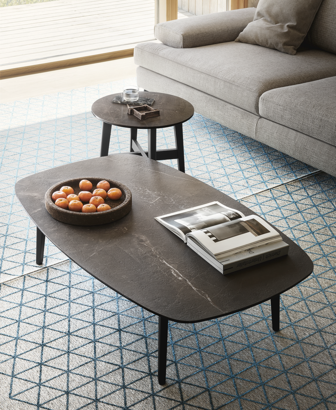 La vaste collection Abrey comprend également des tables basses qui, comme les tables et les chaises, se distinguent par leur piètement arrondi en bois massif. Personnalisable avec des plateaux de formes et de finitions variées, la table basse est disponible en différentes hauteurs et dimensions pour s'adapter à une multitude d'usages.