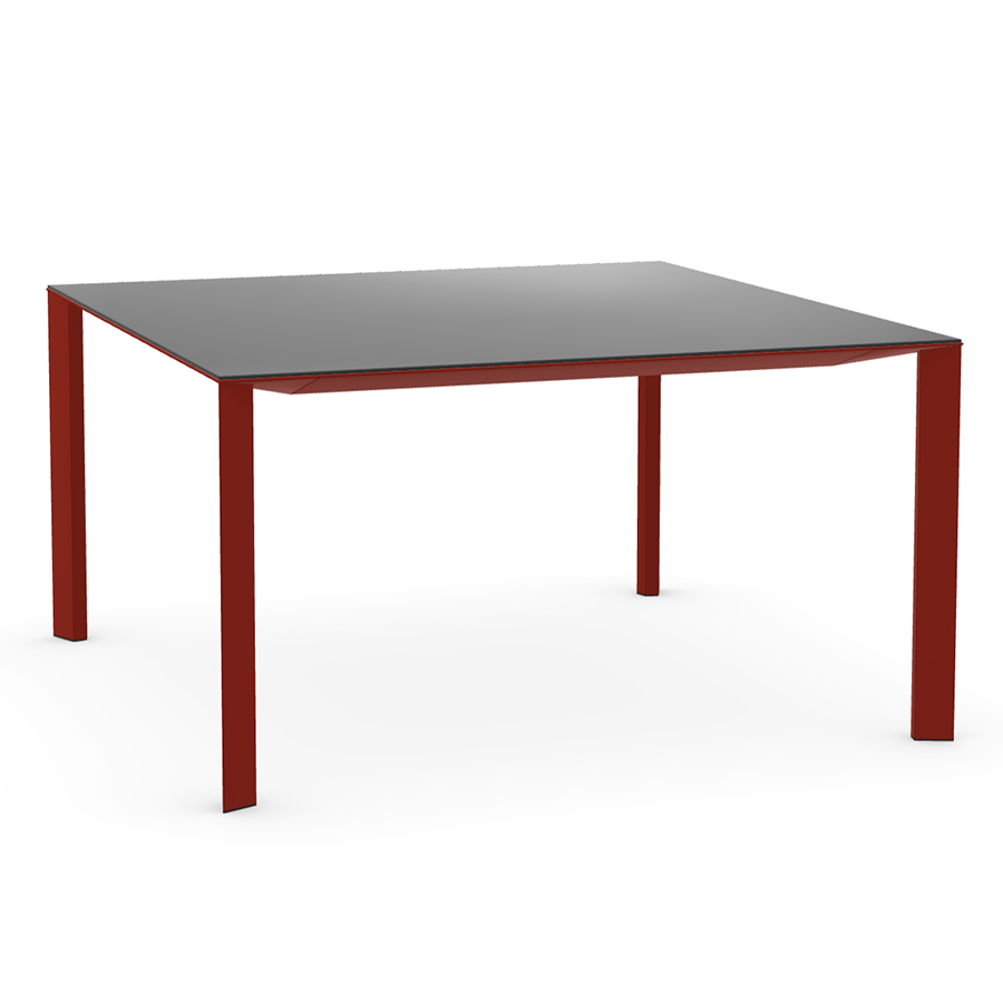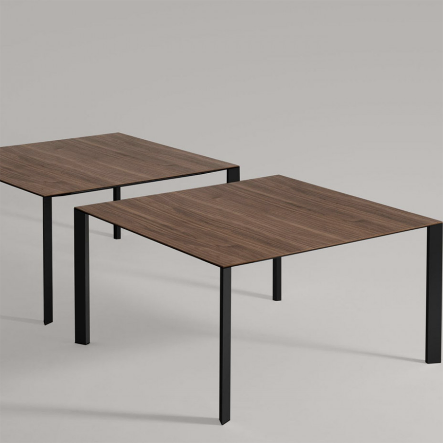 Version fixe disponible avec plateau en mdf, bois plaqué, fenix, stratifié, céramique ou verre (taille 140x140 non disponible en cristalceramica).