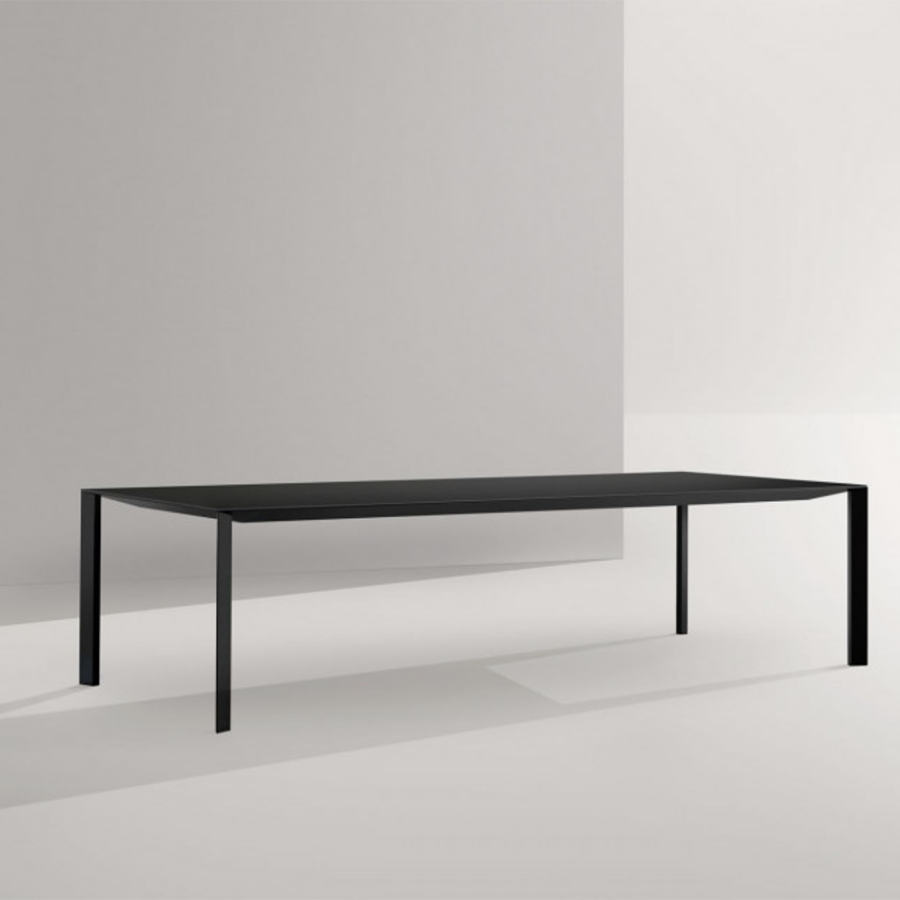 Table fixe Akashi avec base à quatre pieds. Pieds et structure en métal peint.