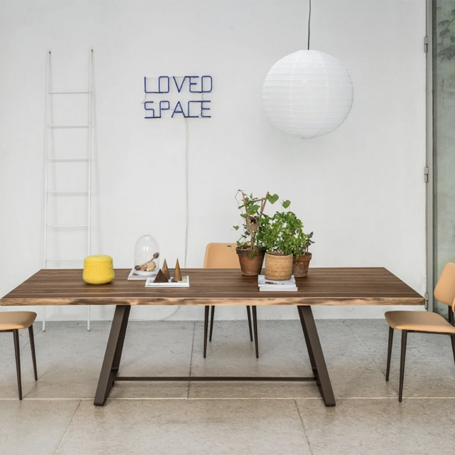 Table Alfred de Midj avec structure en acier et plateau en cristal céramique ou bois