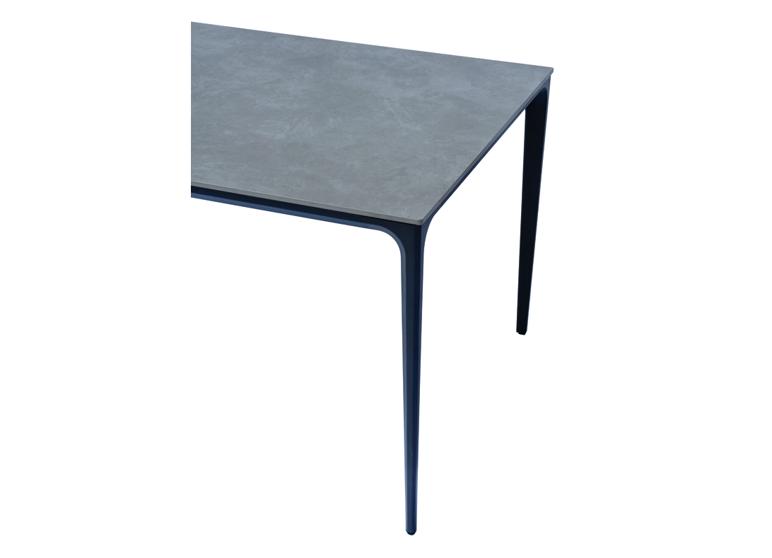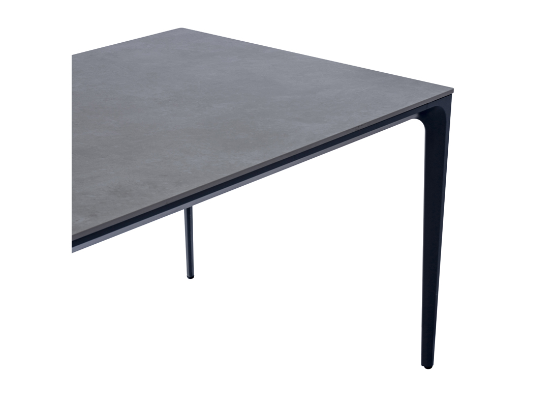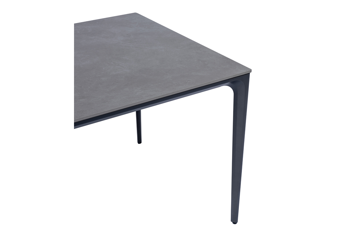 Le plateau en grès cérame effet pierre apporte une touche esthétique élégante et naturelle, tout en offrant une surface solide, durable et facile d'entretien. Cette combinaison de matériaux rend la table idéale pour une utilisation en extérieur, même exposée au soleil, à l'humidité et aux variations de température.