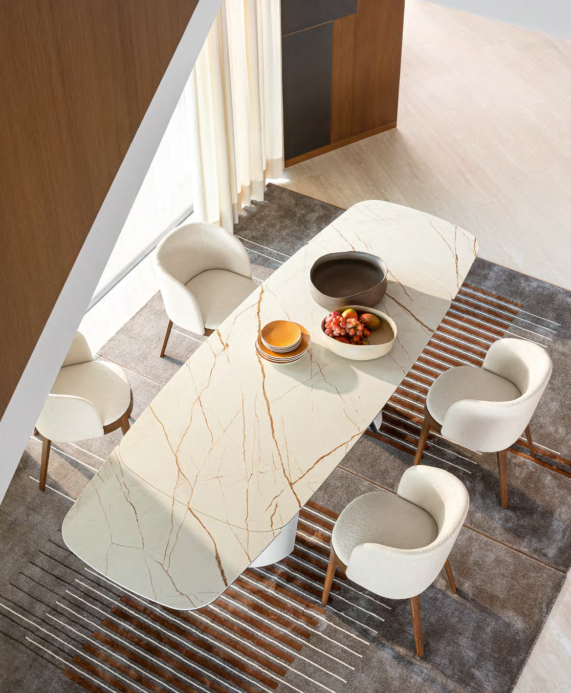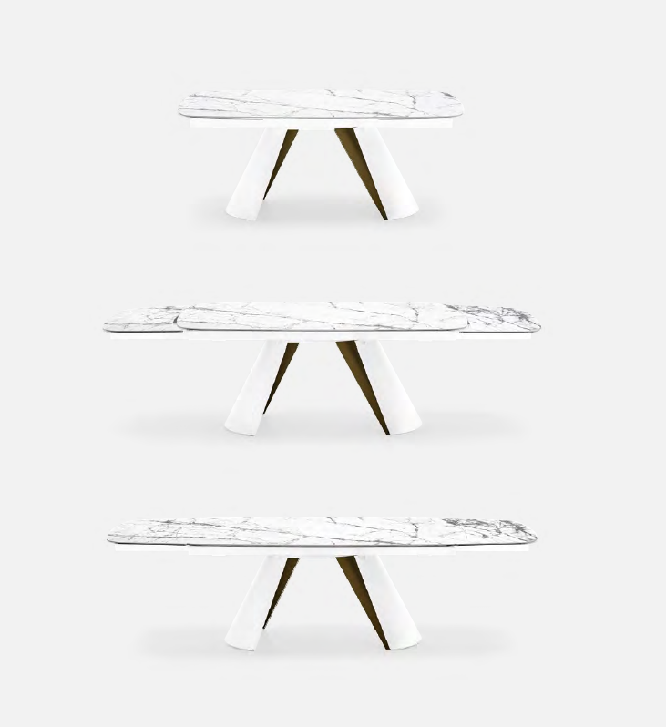 Table APIAN CS4132-S de Calligaris. Apian est une table à la fois majestueuse et légère. Son fin plateau en céramique repose sur une double plaque de métal, courbée et inclinée, qui en constitue la base. L'association de deux plaques de métal de couleurs différentes crée un effet bicolore particulier, qui, dans la version noire, crée un jeu d'ombres et de lumières, et, dans la version blanche, une suggestion graphique.