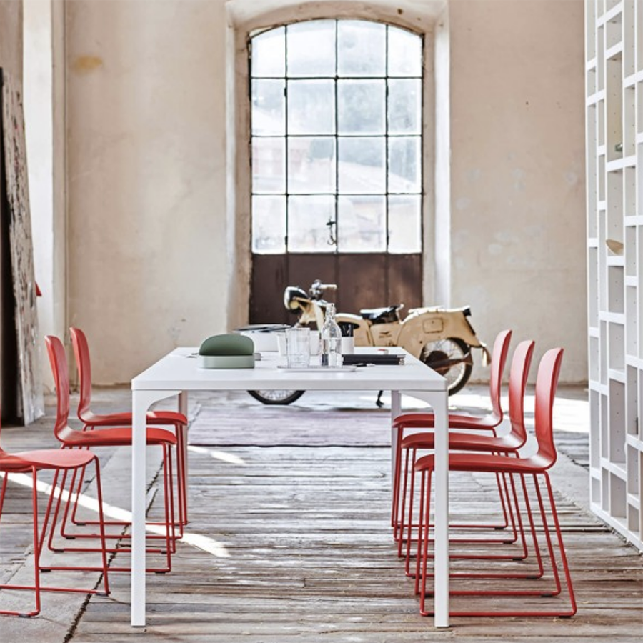 Table fixe Armando avec structure et plateau en métal peint. Disponible en différentes dimensions avec hauteur 76 cm ou 110 cm.