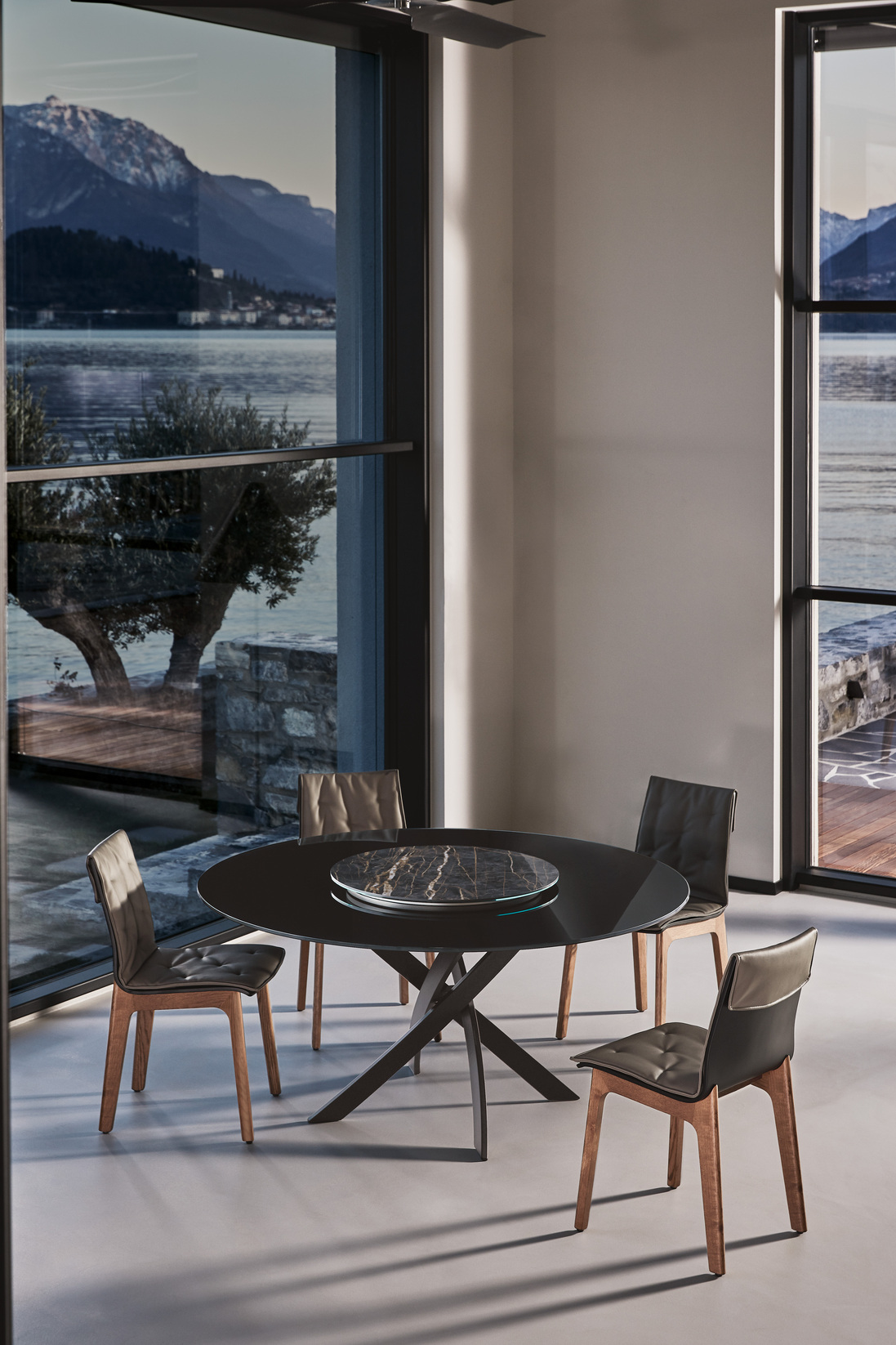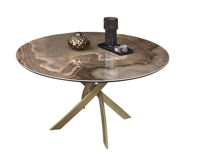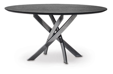 La table Barone se distingue par son design moderne, raffiné et élégant. L'intersection originale de ses quatre pieds lui confère une stabilité parfaite, la rendant idéale pour la salle à manger comme pour le salon. La structure est en acier laqué, disponible en plusieurs coloris : aluminium, blanc, sable, brun foncé, anthracite, noir, Multicolore Élégant, chrome, argent naturel, or ou noir profond brillant. Le plateau est proposé dans une variété de matériaux et de finitions.