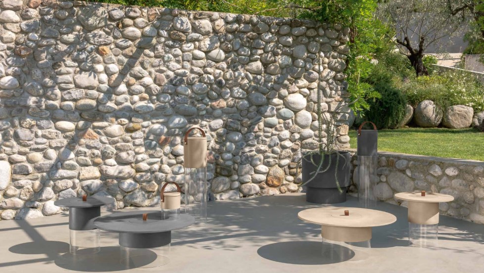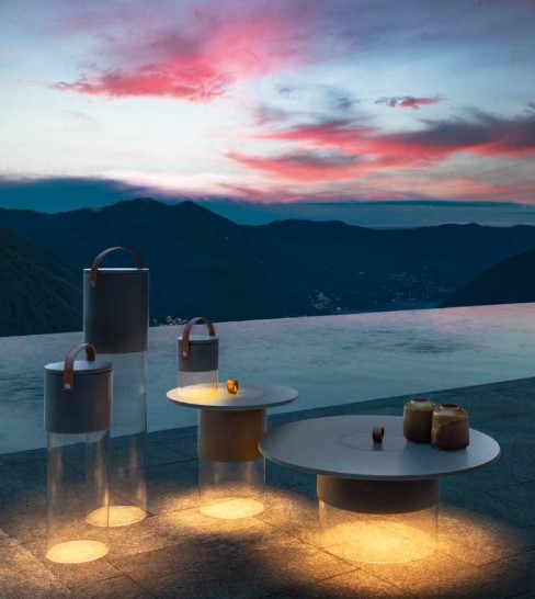 La table basse de la collection Kukà, disponible en deux tailles, est le complément idéal de votre espace extérieur. Innovante, résistante aux intempéries et fabriquée à partir de matériaux écologiques, elle est dotée d'un piètement en méthacrylate qui diffuse la lumière de la lampe rechargeable intégrée et supporte un plateau circulaire en résine avec une poignée en cuir.
