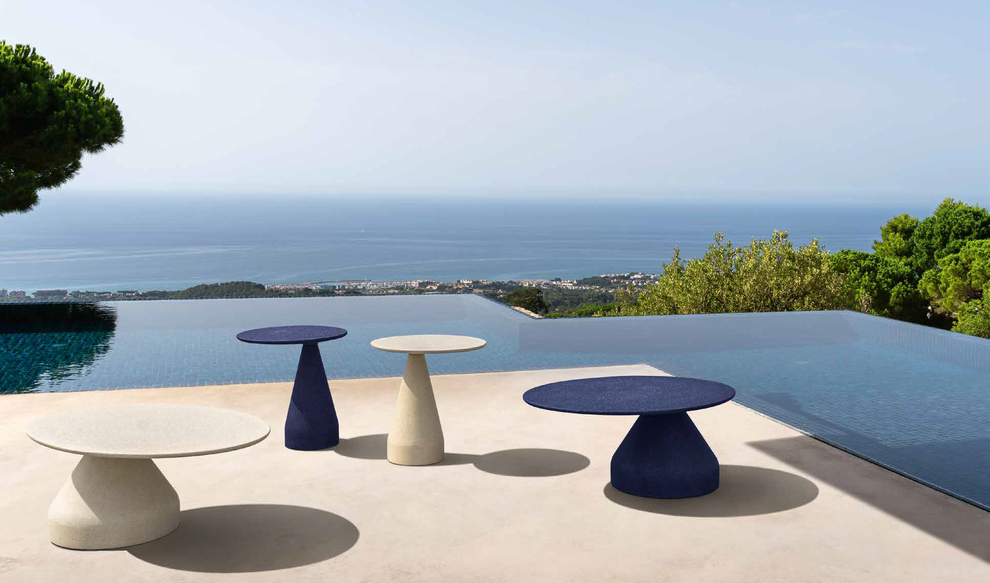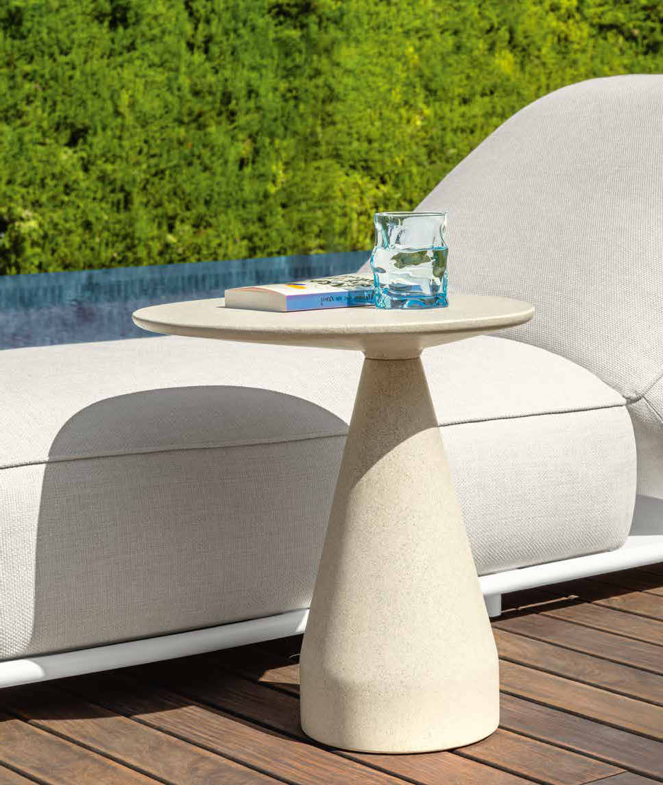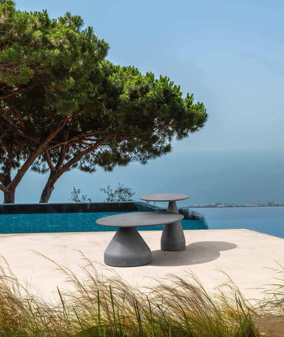 La table basse Plaza de Talenti est fabriquée en béton et est disponible en plusieurs coloris.
