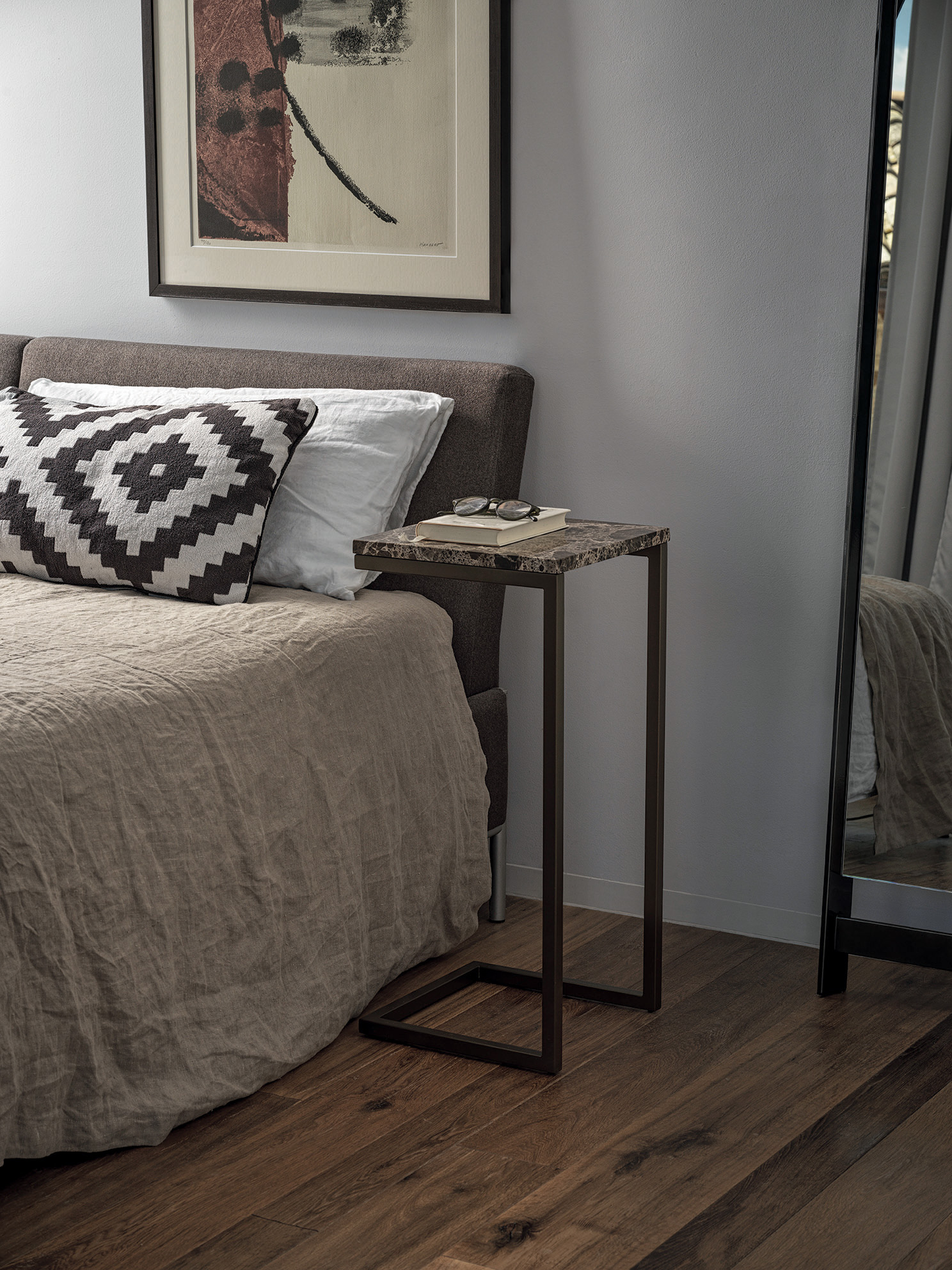 La table basse Tower de Bontempi est disponible en deux tailles et se caractérise par sa grande polyvalence d'utilisation, en effet grâce à la possibilité de la combiner avec la structure du canapé.