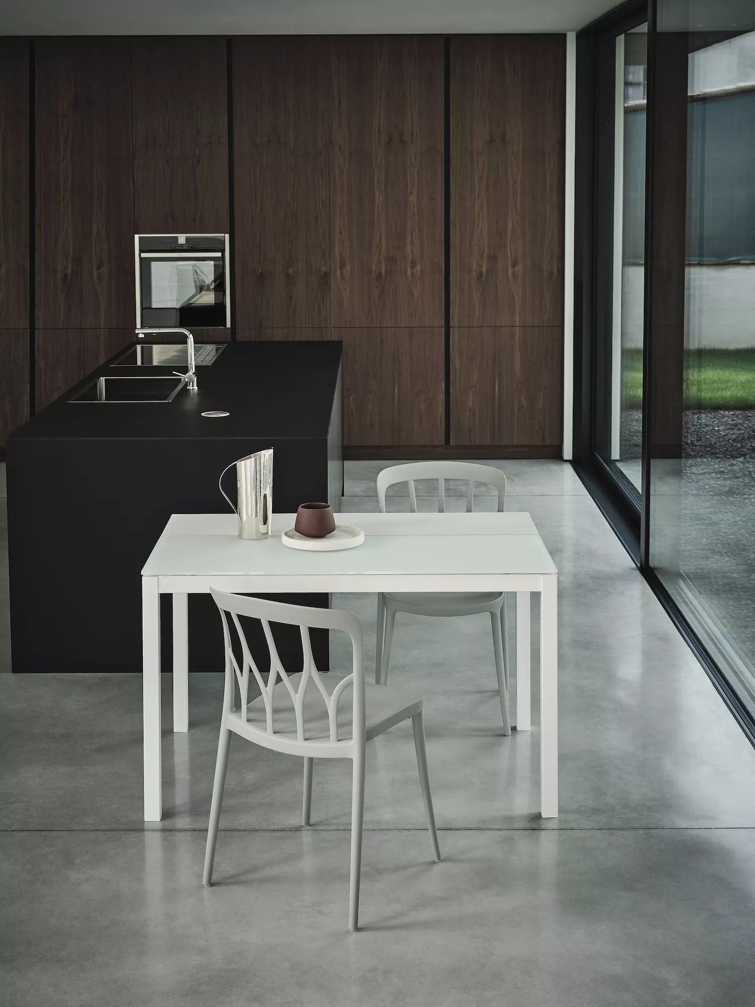 Mago est une console extensible avec un plateau en verre disponible en plusieurs finitions. Ses rallonges sont en mélaminé et sa structure en acier laqué. Mago est la console idéale pour tous les espaces. La structure s'étend, la rallonge s'ouvre comme un livre et s'aligne parfaitement avec le plateau.