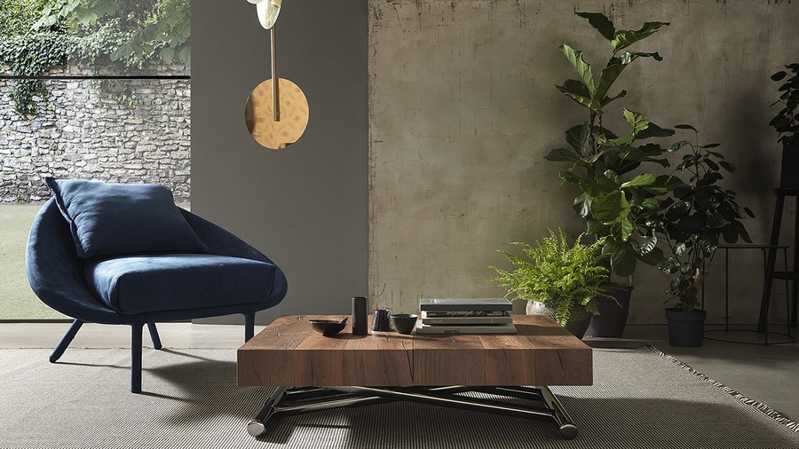 Table basse transformable en table à manger Calypso par Altacom. Piètement en métal, mécanisme à gaz, hauteur réglable au millimètre près de 27 cm à 81 cm, plateau rectangulaire en mélamine, laque, effet bois ou mortier. Ouverture synchronisée, 2 rallonges internes. Roulettes rétractables.