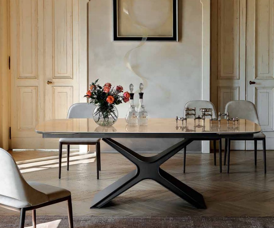 Offrez la table extensible Calliope de Tonin Casa avec structure en acier peint et plateau en divers matériaux. Une rencontre de lignes, agrandies et avec un centre stable, avec des coins courbes et arrondis pour rappeler les formes des avions de dernière génération. La table Calliope allie la beauté de l'acier, sa force et sa résistance, son sentiment de modernité, au luxe de la céramique, du verre ou de la porcelaine. La modernité peut ainsi parfaitement se mélanger à votre goût, dans votre salon pour vous.