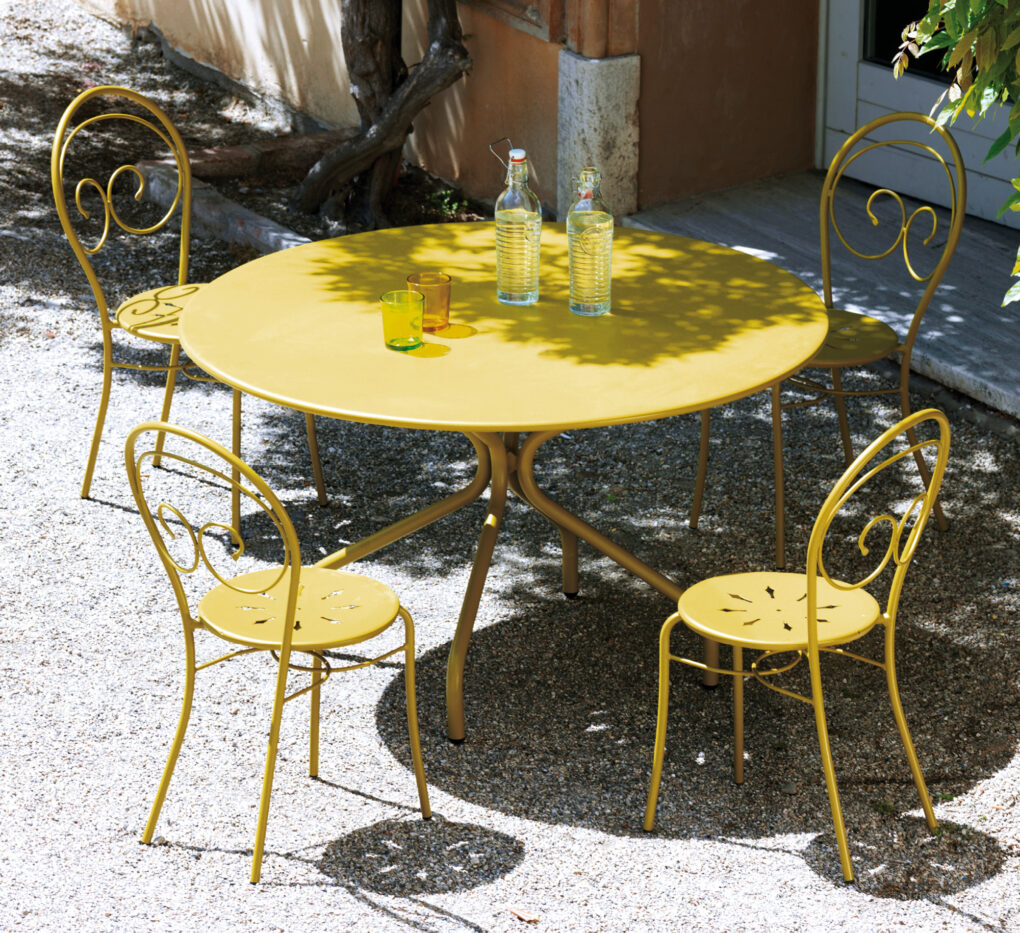 Les lignes harmonieuses et élégantes, le design classique et le soin apporté au traitement du fer caractérisent la table galvanisée Springtime de Vermobil.