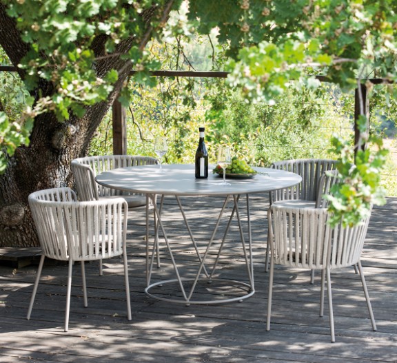 La collection Daisy de Vermobil présente cette table ronde, basse et minimaliste en acier galvanisé. Adaptée à un usage extérieur et disponible en différentes finitions, cette table complète harmonieusement l'aménagement du salon de cette ligne.