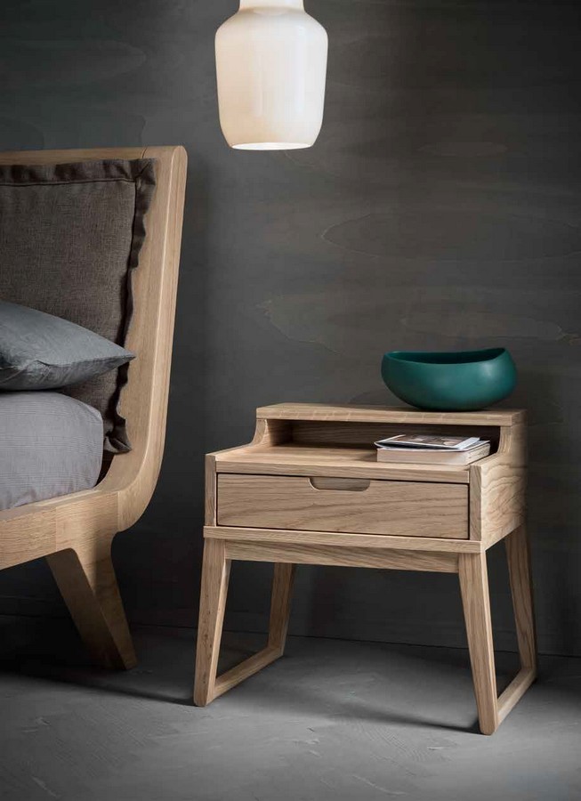 Table de chevet en bois massif Clover d'Altacorte avec un tiroir. Table de chevet au design sophistiqué et jamais banal, entièrement réalisée en chêne massif brossé, astucieusement finie par des artisans experts. Les détails font la différence.