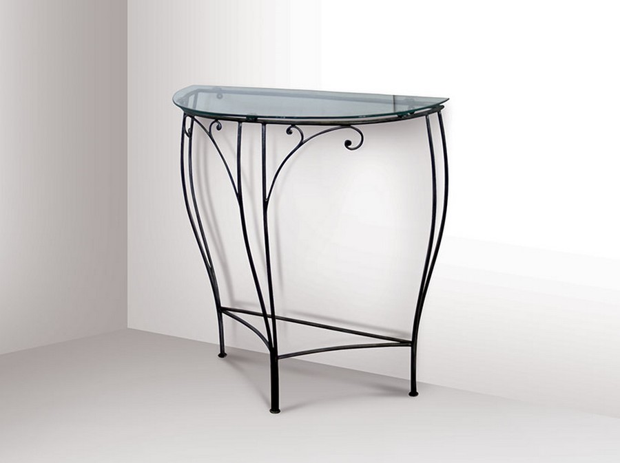 Table de chevet Nibbio de Pama Letti en fer forgé et plateau en verre.