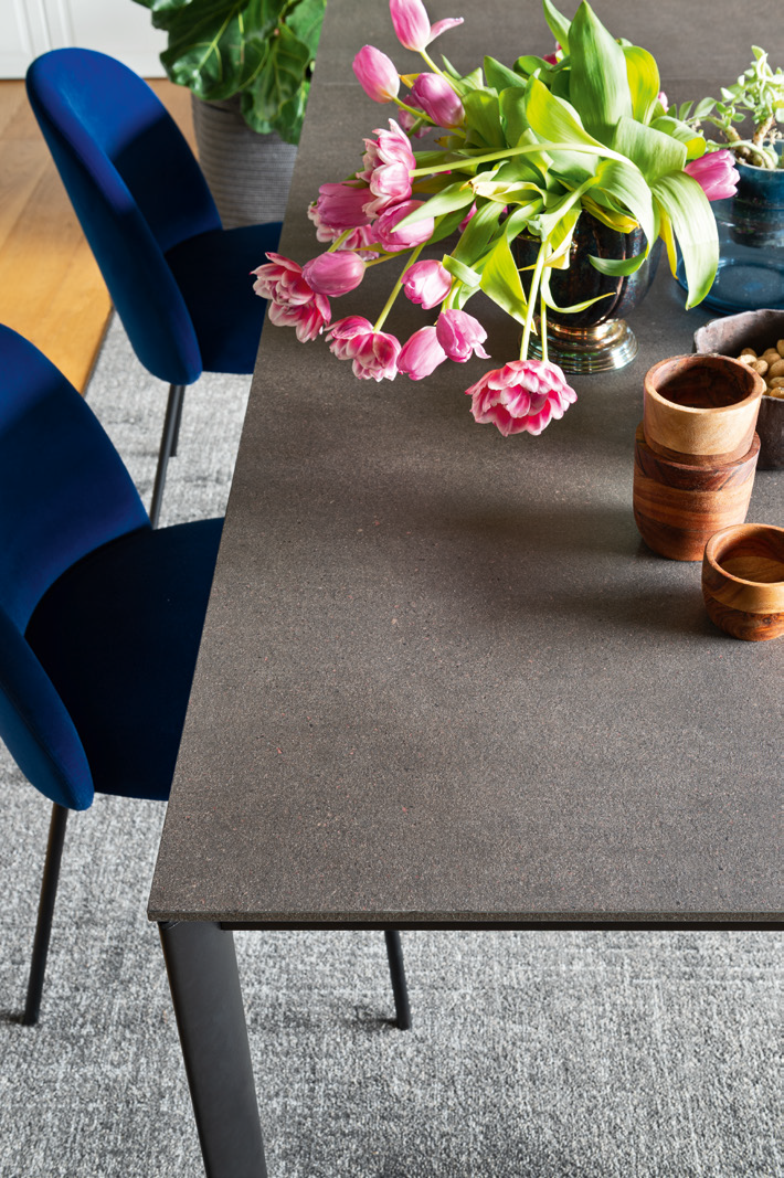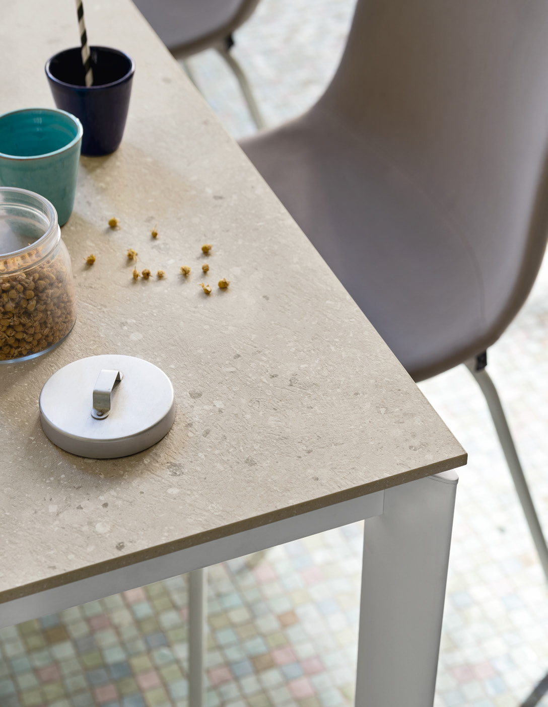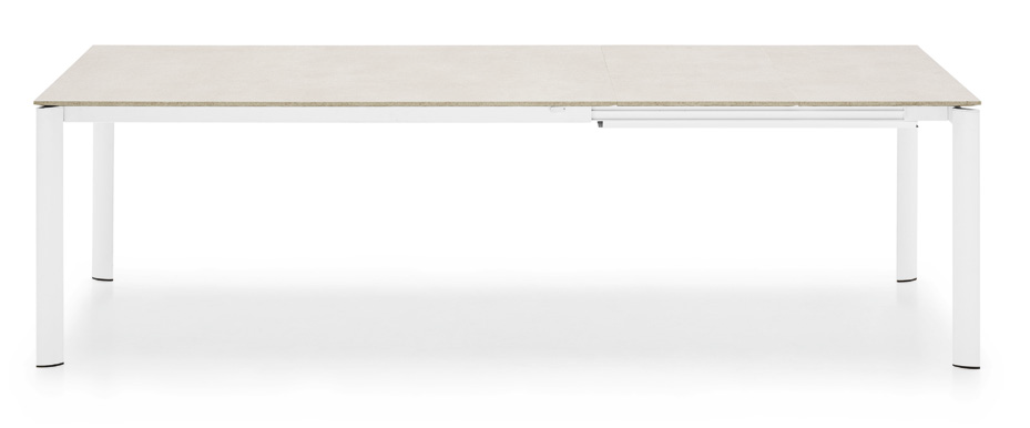 Table Eminence Evo de Connubia avec piètement en métal, structure en aluminium et plateau en mélamine (avec rallonges en mélamine) ou en céramique sur verre (avec rallonges en mélamine). Eminence Evo est une table extensible avec différents types de plateaux, avec une ou plusieurs rallonges, pour s'adapter à tous les espaces et styles. Ce modèle se distingue par son pied elliptique. Eminence Evo est une table extensible avec mécanisme manuel ; les rallonges se relèvent et se positionnent à la hauteur du plateau principal. Les pieds de cette table sont toujours périphériques pour assurer le confort de tous les convives.