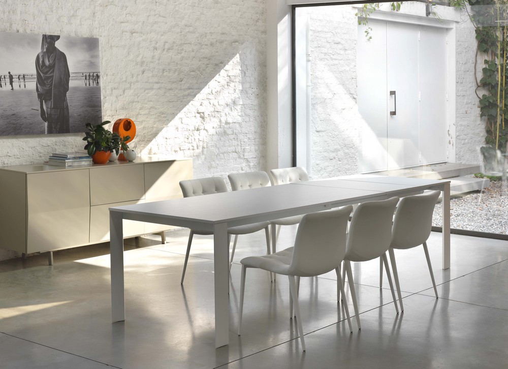 La table Pascal Bontempi, grâce à ses trois rallonges, peut atteindre une longueur de 319 cm. Son design simple, moderne et élégant permet d'aménager cuisines et salons avec un style unique et inimitable. Le mécanisme d'extension est laqué pour s'harmoniser avec le piètement en acier.