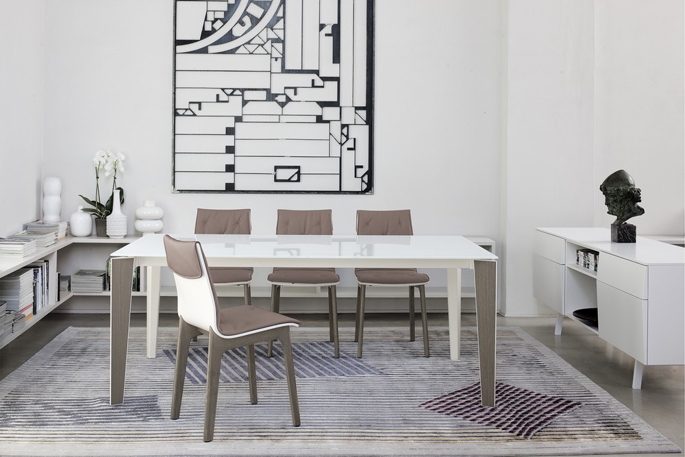 Senso est une table extensible à structure en acier laqué, disponible en plusieurs finitions. Son originalité réside dans les inserts décoratifs de ses pieds, offrant une grande flexibilité de personnalisation : vous pouvez ainsi les assortir au plateau ou aux pieds de vos chaises. Une table au design raffiné qui apporte une touche d'élégance et d'originalité à tout espace.