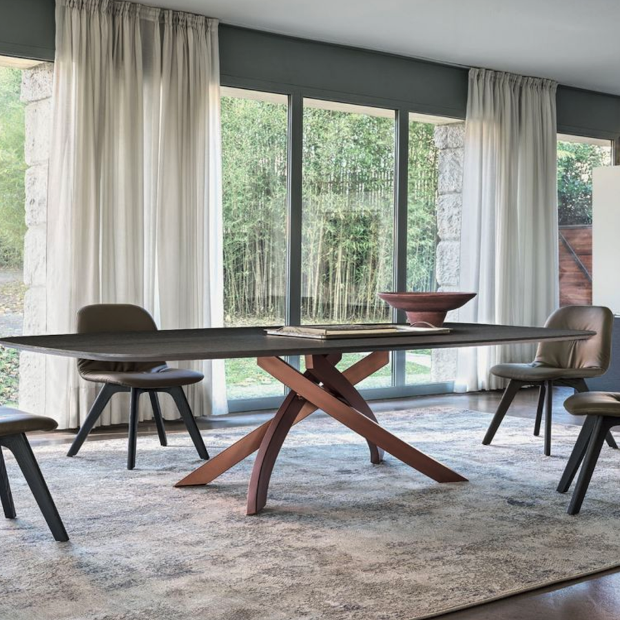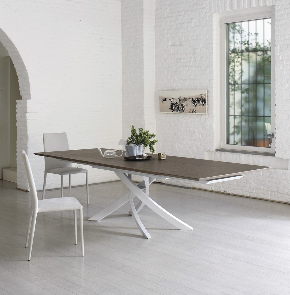 La table Artistico de Bontempi se distingue par son style unique et raffiné et se décline en différentes dimensions, en version fixe ou extensible. Son piètement est en acier laqué, disponible en plusieurs finitions. Le plateau, quant à lui, se décline en de nombreux matériaux et finitions. La table Artistico de Bontempi, fixe ou extensible, arbore un design unique, idéal pour une décoration moderne qui évoque la tradition grâce à l'utilisation du bois, omniprésent aux côtés de l'acier, dans l'ensemble de sa structure. Nouvelle, jeune, moderne et élégante, la table Artistico de Bontempi, fixe ou extensible, s'adapte à tous les intérieurs et habille votre maison avec élégance, grâce à son style unique et raffiné.