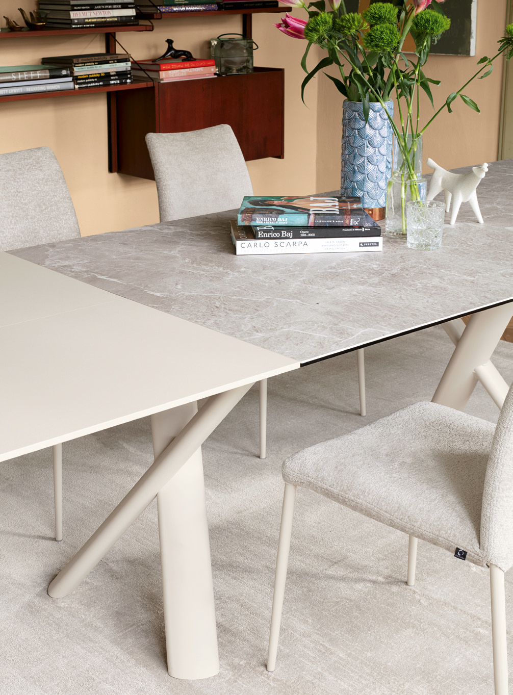La table Master est une œuvre d'art qui allie fonctionnalité et style avec brio. Sa structure robuste et son esthétique moderne se distinguent par leur nouveau caisson, doté d'un mécanisme innovant, qui abrite un plateau coulissant en céramique, tandis que sa rallonge en mélamine, de type livre, garantit une polyvalence inégalée. Master est un nom synonyme d'excellence et d'autorité : cette table se distingue par sa fonctionnalité supérieure. Son design minimaliste et l'utilisation de matériaux de haute qualité en font un choix idéal pour les environnements modernes et dynamiques, où durabilité et esthétique sont essentielles.