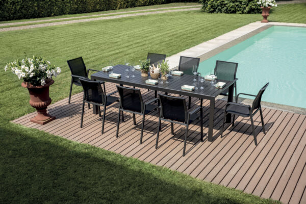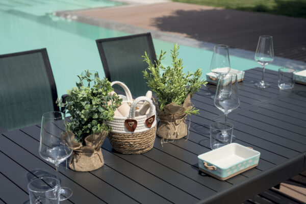 Aluminium ANTHRACITE, extensible 160/240 x 90 cm, rallonge avec pieds coulissants, plateau aluminium.