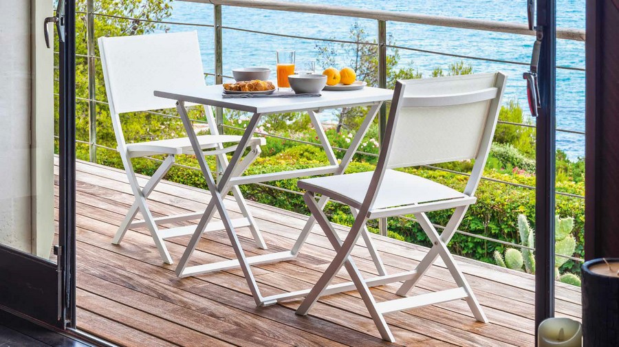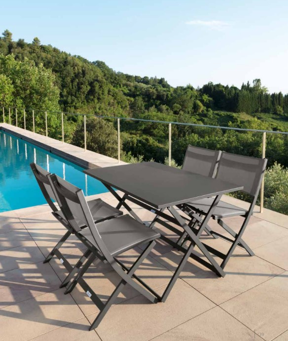La gamme Queen de Talenti propose cette table pratique et élégante, pliable pour un rangement facile. Sa structure entièrement en aluminium, disponible en blanc, gris tourterelle et anthracite, s'harmonisera avec tous les espaces et se décline en deux versions : carrée et rectangulaire.