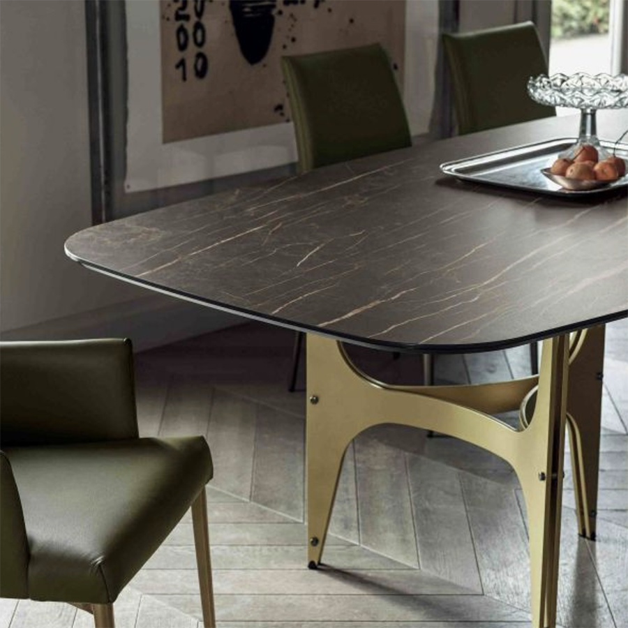 La table Universe XXL de Bontempi présente une structure en acier laqué ornée de détails décoratifs et un plateau disponible en divers matériaux et finitions. Son piètement unique, orné d'éléments décoratifs entre les pieds, se décline en différentes couleurs pour souligner son originalité.