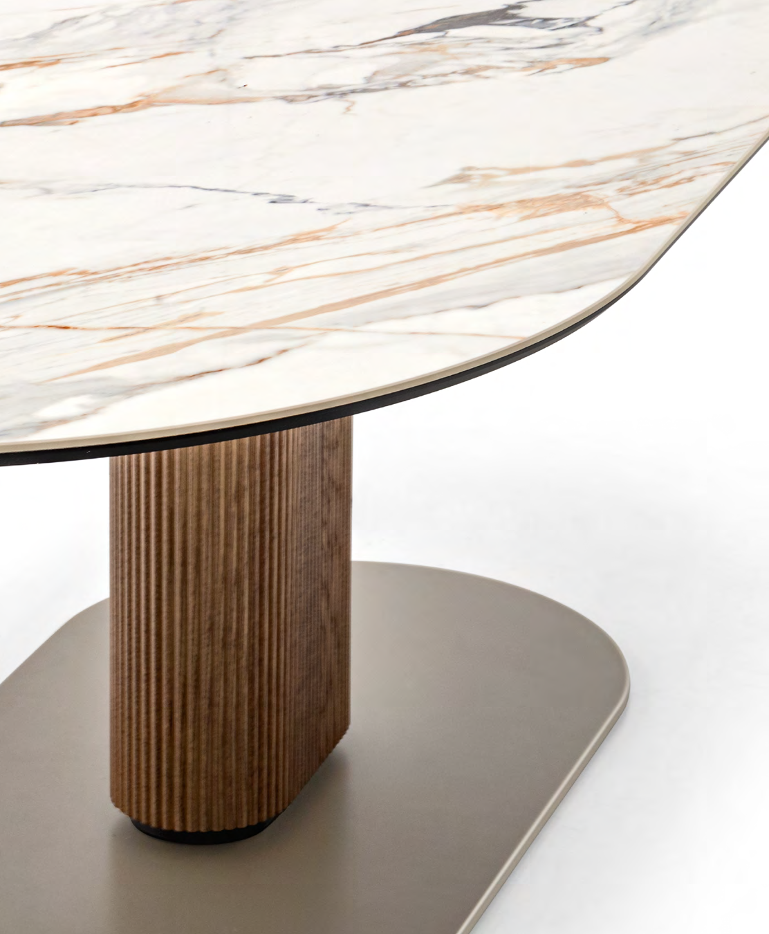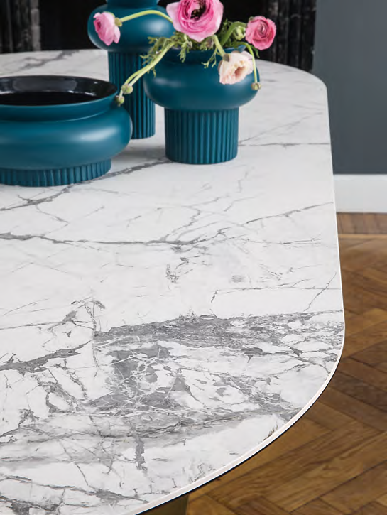 Table CAMEO CS4124-FE de Calligaris. Parmi les tables les plus appréciées de Calligaris, Cameo allie fonctionnalité et esthétique. L'association du plateau ovale, extensible, et de la colonne centrale assure un confort d'assise optimal. L'ovale est présent dans tous les éléments, caractérisés par des associations sophistiquées de matériaux, notamment la finition nervurée de la colonne.