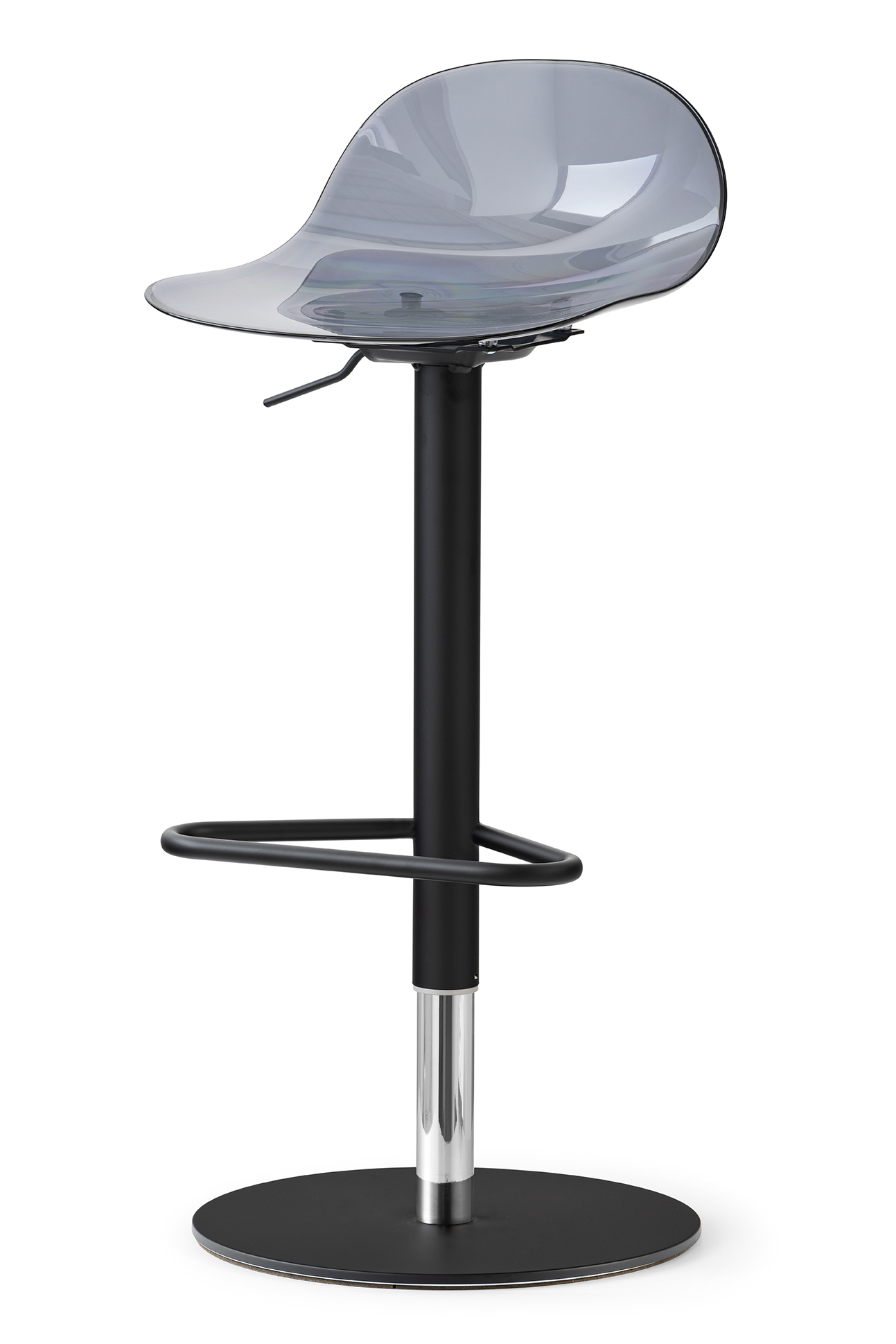La forme légère et simple du siège est conçue pour s'adapter parfaitement à n'importe quel environnement et situation, ajoutant de la personnalité à votre cuisine ou à votre espace commercial. Dans cette version, le châssis à vérin à gaz, pivotant et réglable en hauteur peut être combiné avec une large gamme de sièges pour satisfaire tous les besoins esthétiques et fonctionnels. Tabouret pivotant avec vérin à gaz et base lestée.