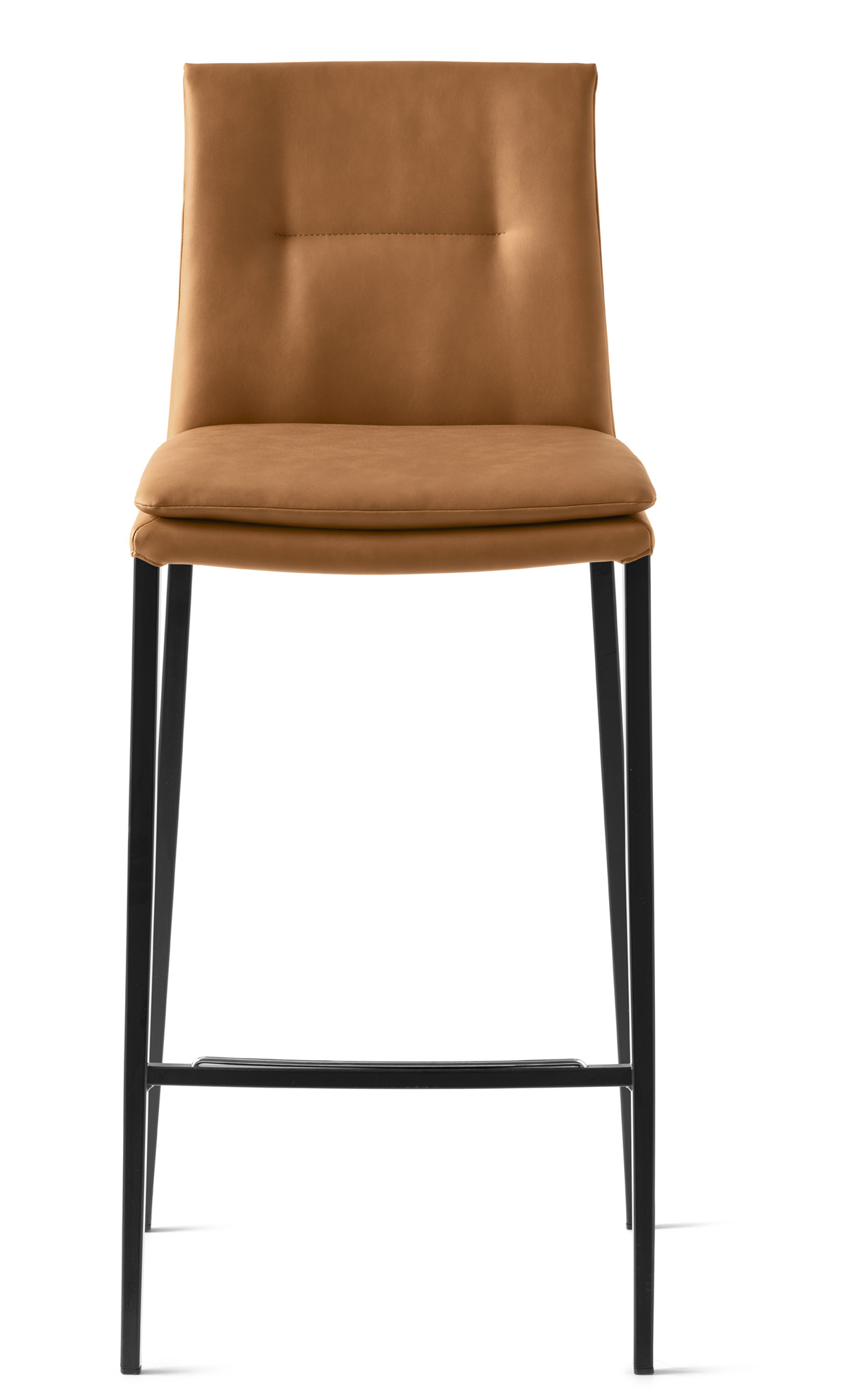 Tabouret Carmen CS2217 de Calligaris. La collection Carmen se caractérise par des lignes épurées et essentielles. Les pieds en métal sont fins, tout comme l'épaisseur de l'assise et du dossier, mais le confort est assuré par le rembourrage avec coussin fixe qui crée un pli original sur le dossier. Carmen est également disponible en version tabouret avec repose-pieds.