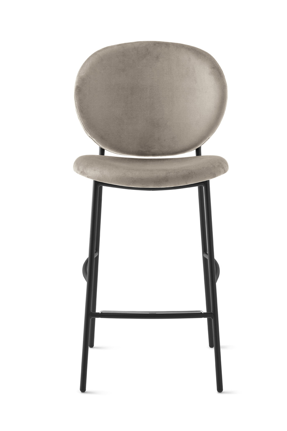 Ce tabouret réinterprète le style des sièges des années 50 avec des formes douces et gracieuses. Sa structure métallique soutient l'assise et le dossier avec élégance et légèreté, et sa silhouette arrondie et accueillante le rend idéal pour ceux qui apprécient la sobriété et le charme des matériaux classiques.