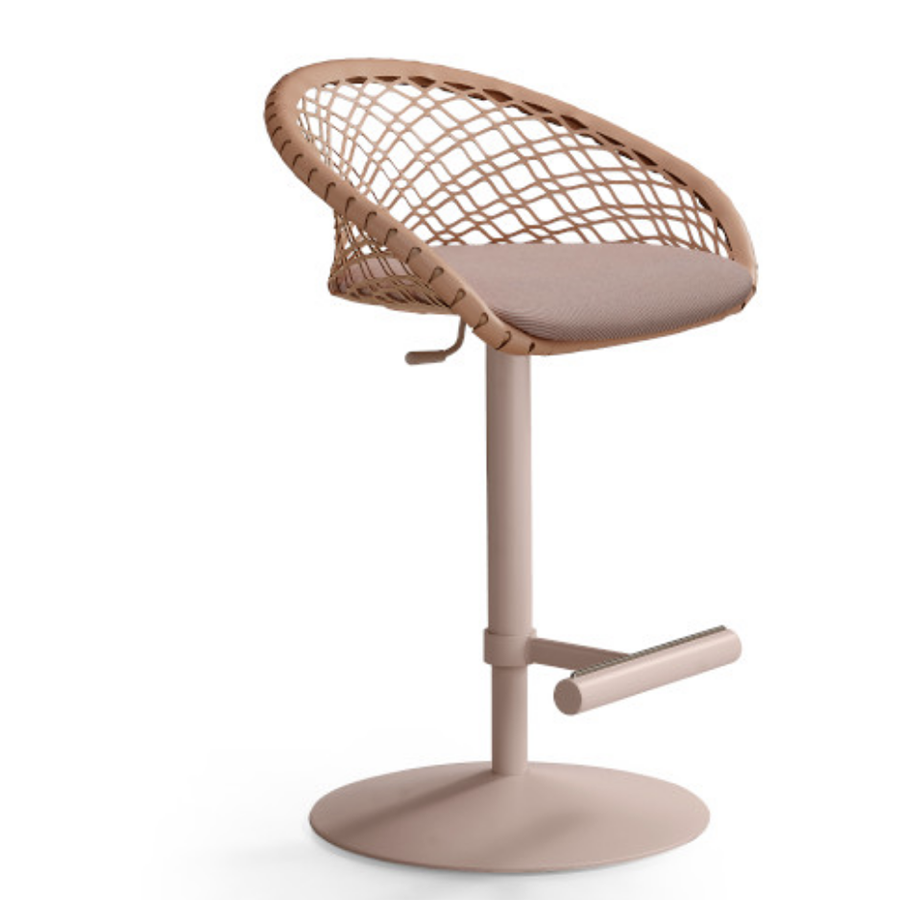 Tabouret réglable en hauteur avec structure en métal. Dossier en cuir TK ou cuir toscan, assise recouverte de cuir, simili cuir, tissu ou tissu client.
