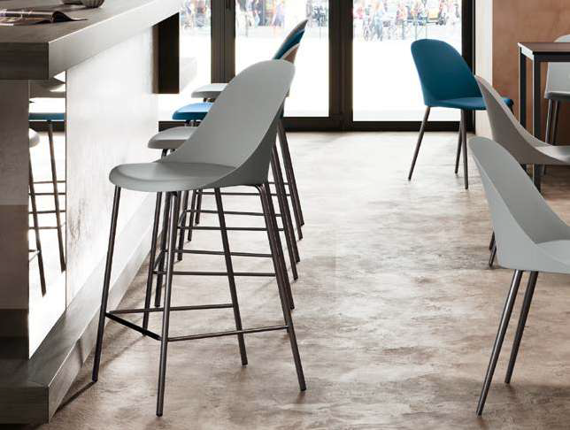 Tabouret Sam d'Ingenia avec structure en acier laqué, disponible en deux versions : 4 pieds ou base simple, pivotant et réglable par vérin à gaz chromé. Disponible avec coque en polypropylène ou rembourré et tapissé dans de nombreuses finitions. La version outdoor est dotée d'une structure en acier laqué et d'une assise et d'un dossier en polypropylène et fibre de verre.