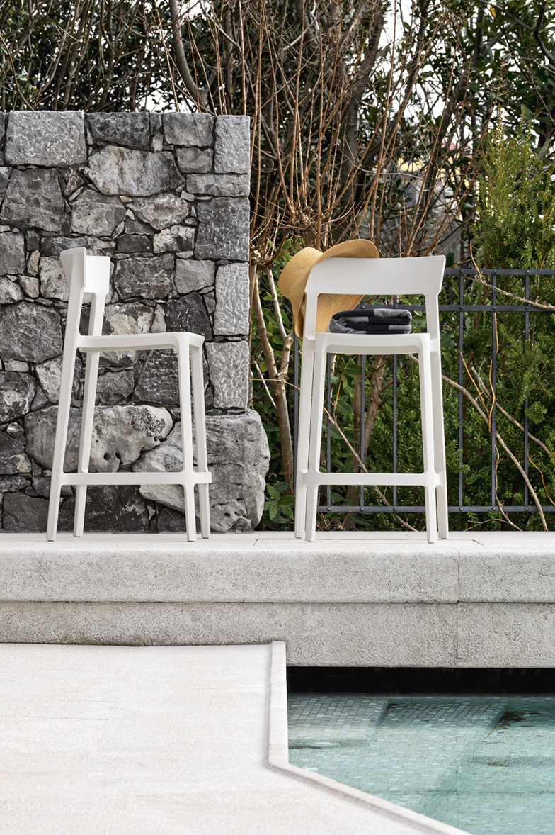 Coloré, empilable et fonctionnel, le tabouret SKIN incarne un style minimaliste. Avec son design simple et raffiné à la fois, il est l'allié indispensable de chaque intérieur. Résistant et léger, il est fabriqué grâce à la technologie innovante d'air-moulding, un procédé qui lui confère une résistance exceptionnelle et réduit son poids. Les pieds de support antichoc sont interchangeables en polyéthylène haute résistance. Fabriqué en polypropylène, il est également équipé d'un repose-pieds et peut être utilisé à l'extérieur.