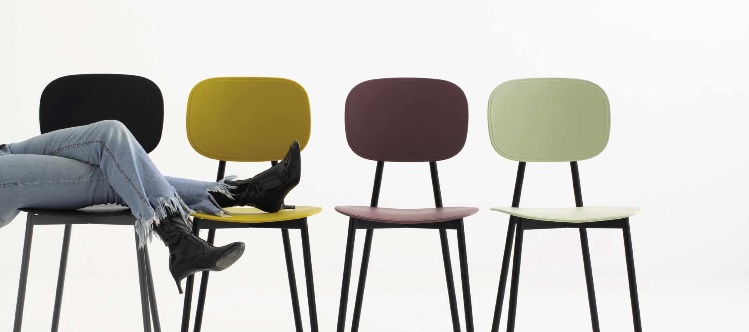 Tabouret avec structure en acier peint, assise et dossier en plastique. Recommandé pour les cuisines modernes au design fort et moderne.