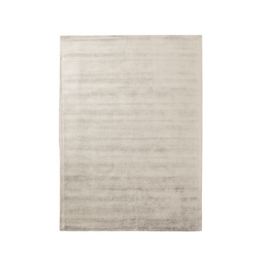 Le tapis Boss aux matériaux avancés et au design intemporel est fabriqué en coton Tencel et viscose tissés à la main. Le patron est rasé à décor géométrique en petit carré en relief. Il est disponible en coloris perle ou gris.