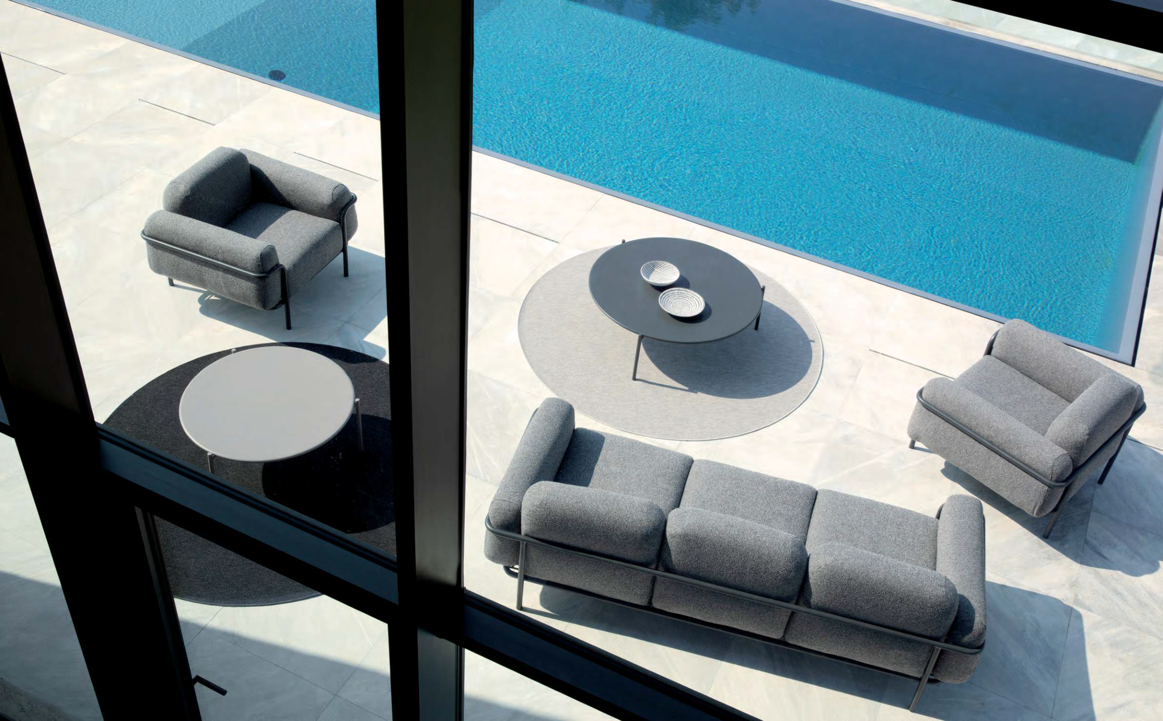Tapis d'extérieur TAPCAM de Vermobil disponible en différentes tailles et couleurs. Les tapis sont fabriqués en fibre de polyester. Ses polymères sont fabriqués et tissés à la main, ce qui confère à ce produit une qualité supérieure. Le tapis est doté de traitements antifongiques et antibactériens, résistants à la détérioration causée par le soleil, l'humidité et le chlore.