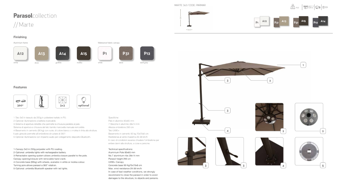 Parasol en tissu Marte de la ligne Parasol de Garden Talents