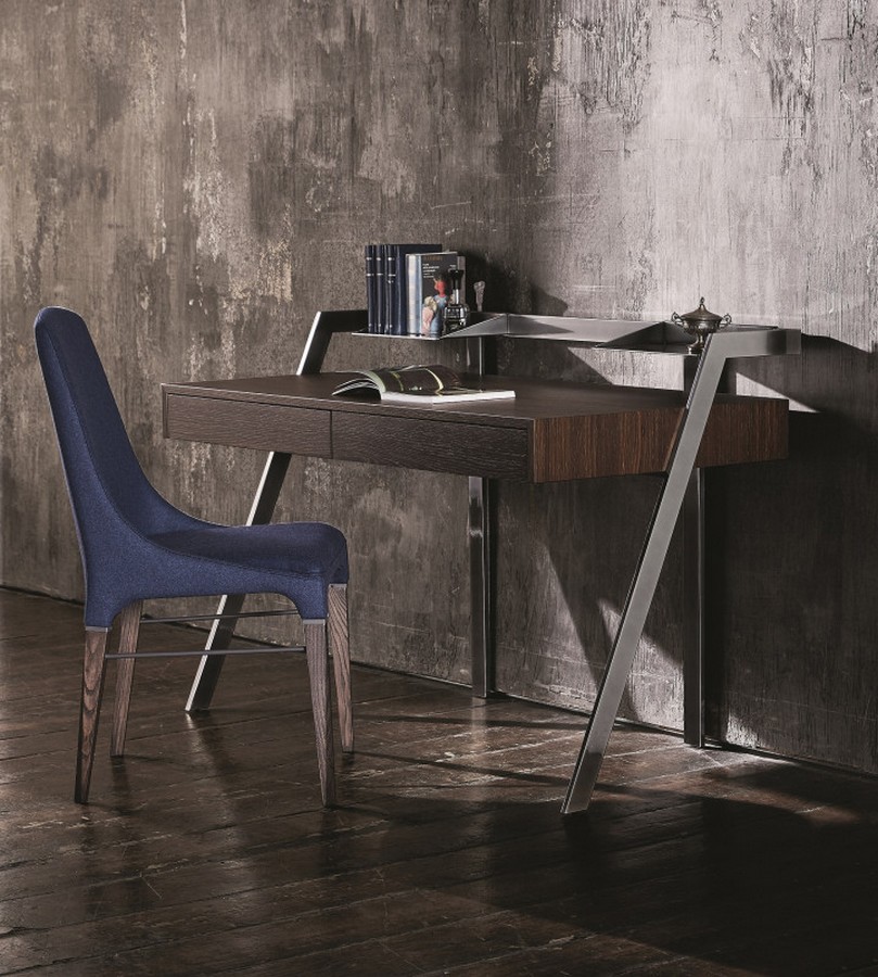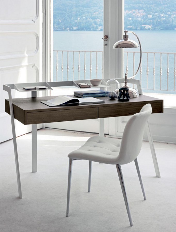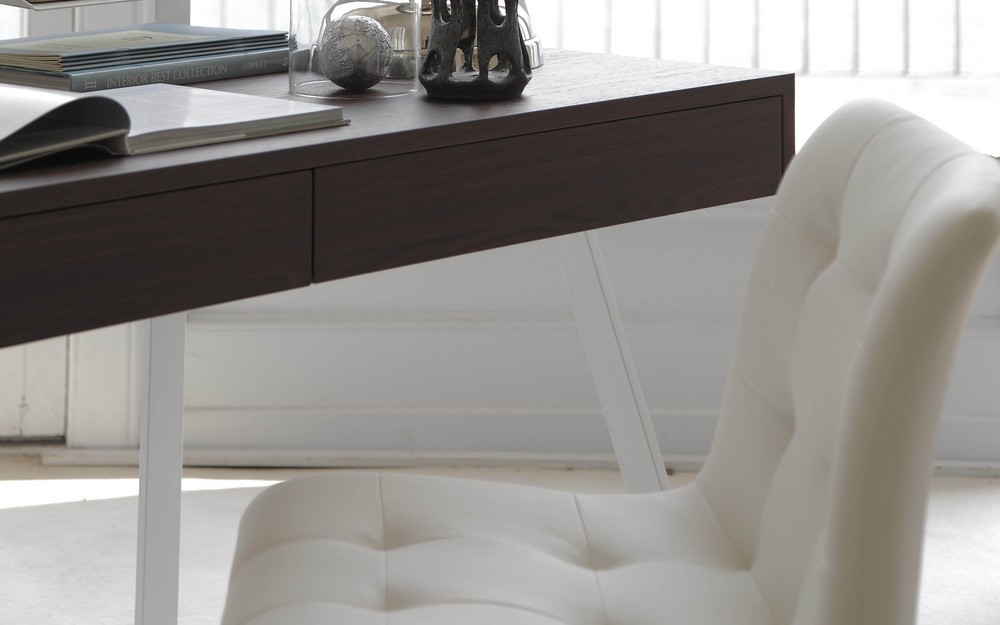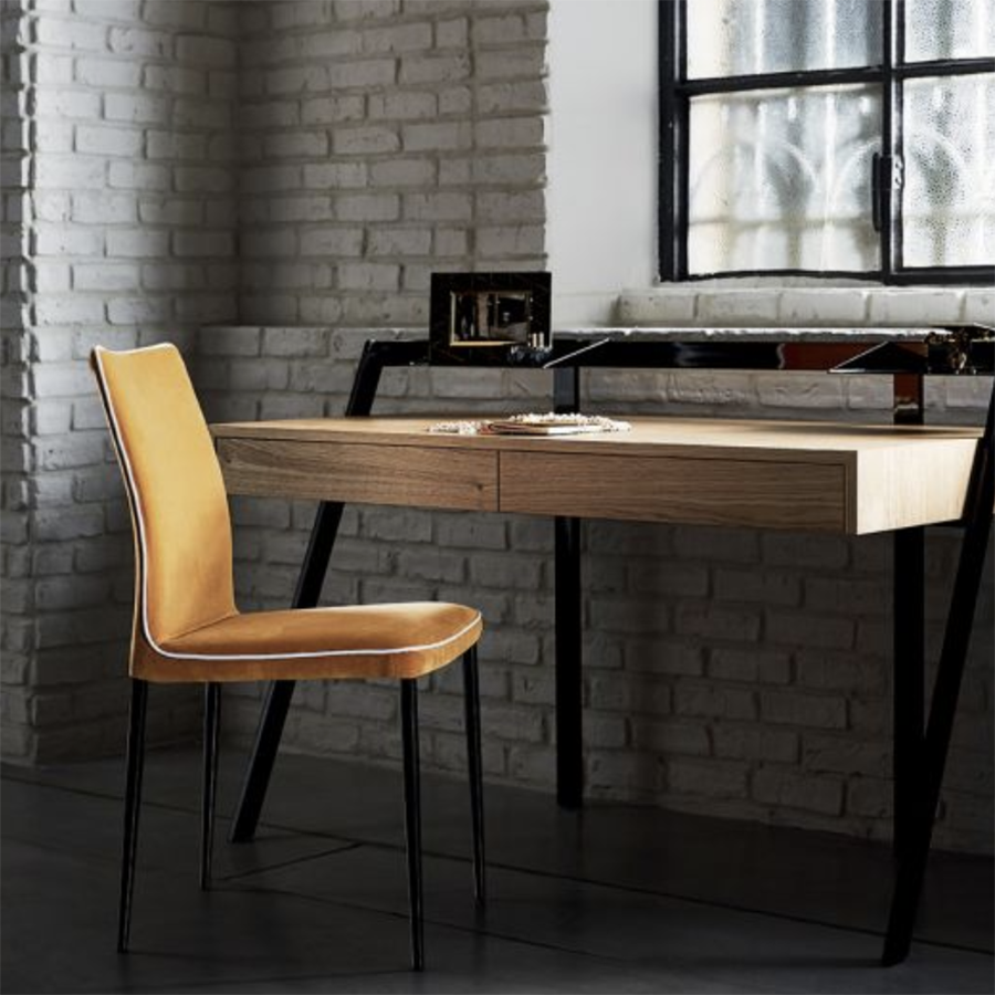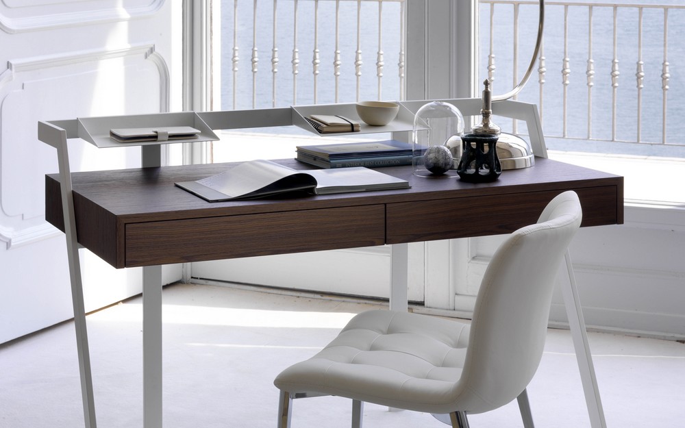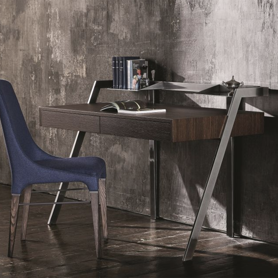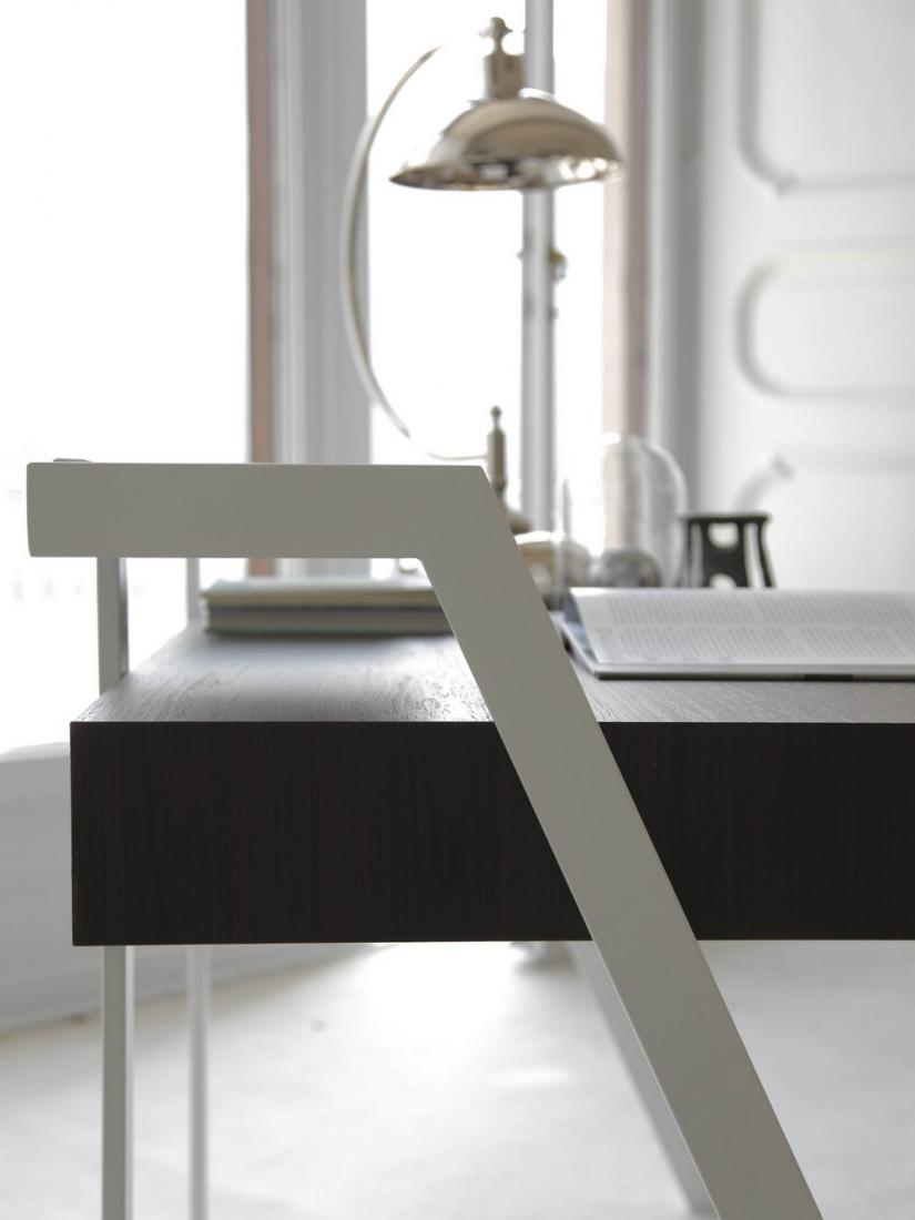 Bureau Zac de Bontempi avec structure et deux plateaux de rangement en acier laqué en différentes finitions. Le plateau et les deux tiroirs sont en bois plaqué. Zac peut être placé dans tout type de meuble. Grâce à son design élégant, il peut être placé dans la chambre, le salon, le bureau et peut être positionné au centre de la pièce, adapté pour se combiner avec tout type de mobilier.