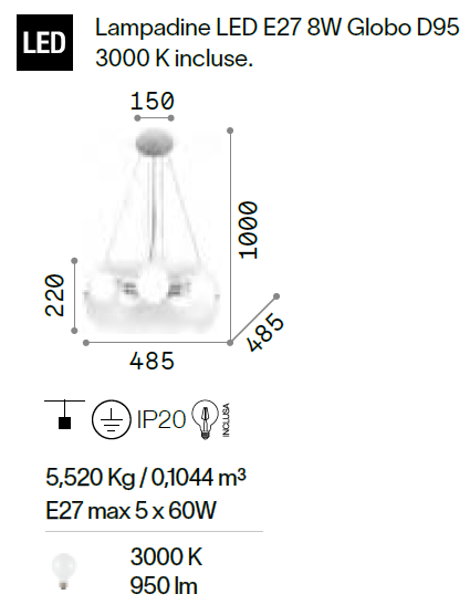 • mm: Ø 485 x H. 220 x H. totale 1000