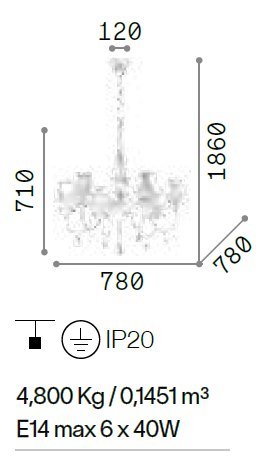 • mm: Ø 780 x H. paralume 710 x H. 1860