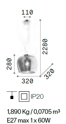 • mm: Ø 320 x H. paralume 280 x H. 2280