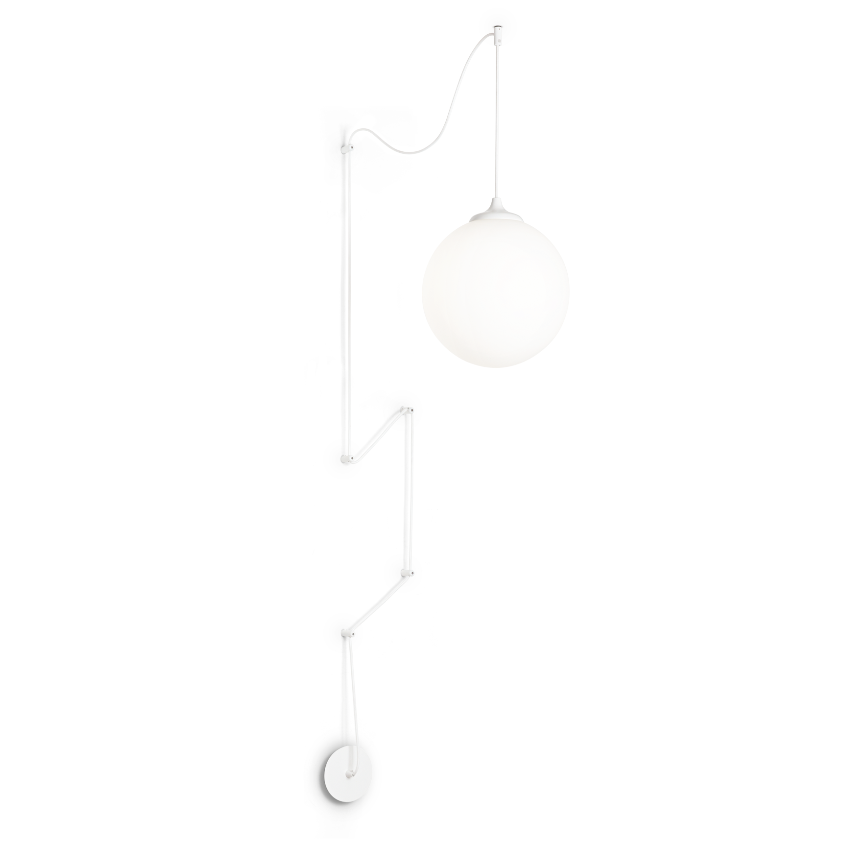 Lampada a sospensione BOA SP1 bianco di Ideal Lux con montatura in metallo verniciato opaco bianco. Cavo in tessuto da 12 metri con 6 supporti. Diffusore in vetro soffiato bianco acidato. Lampadina esclusa.