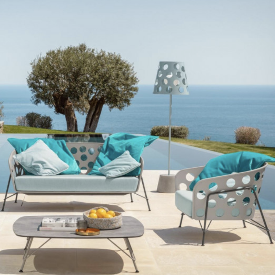 Nata dalla collaborazione con la designer Paola Navone, la collezione Bolle si compone di poltrona attesa, divanetto, coffee table, lampade a sospensione e da terra. Un design giocoso, caratterizzato da un motivo macro forato che richiama la leggerezza delle bolle. Decisa, accogliente e allegra, questa collezione propone un’estetica morbida e un design dal sapore mediterraneo, per vivere con originalità gli ambienti ricettivi e domestici.