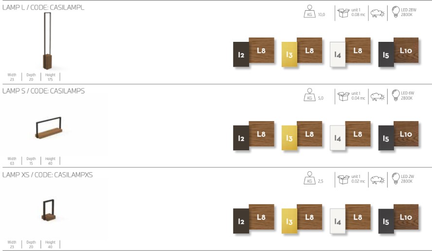 La lampada Casilda è un elemento illuminante pensato in abbinamento perfetto con gli arredi da esterno della stessa collezione. La struttura geometrica è in acciaio inox verniciato a polvere abbinato ad una base in legno iroko.